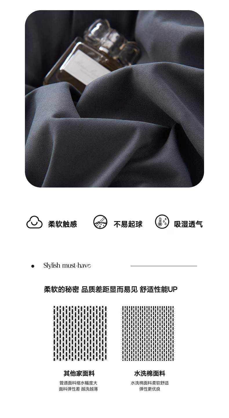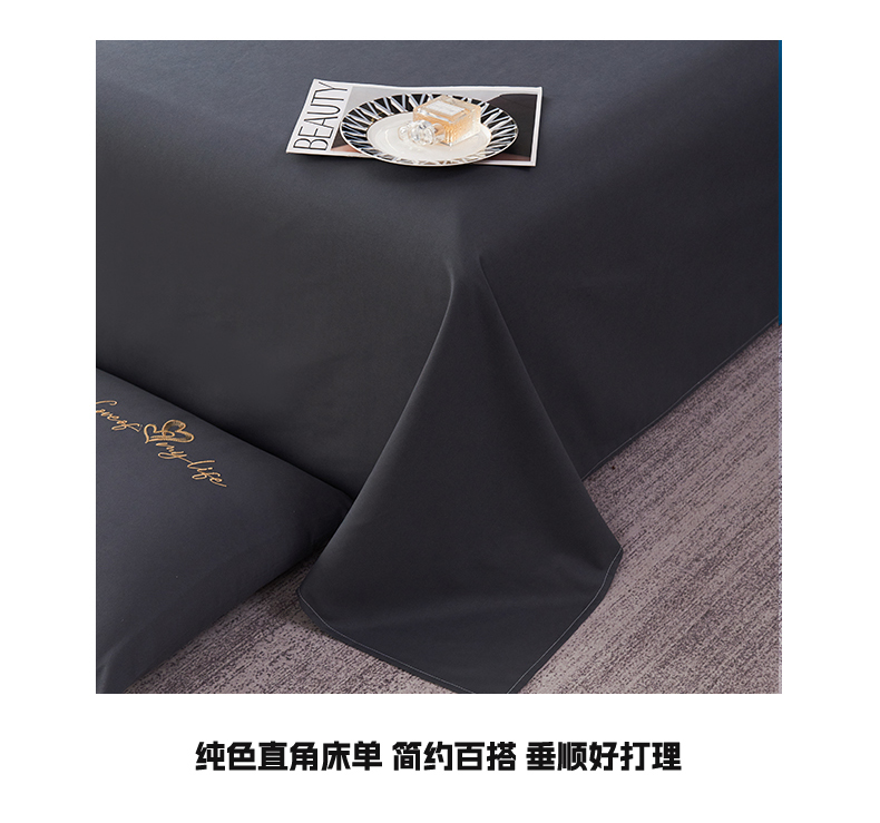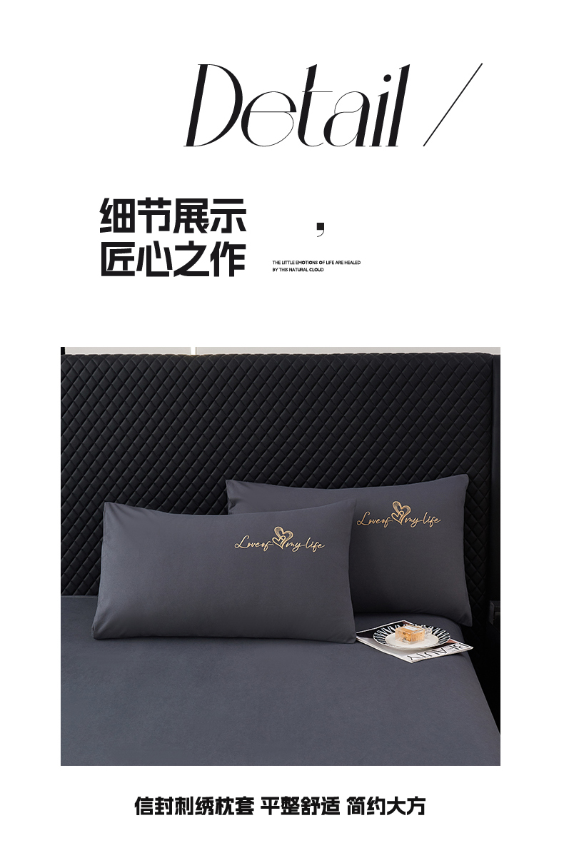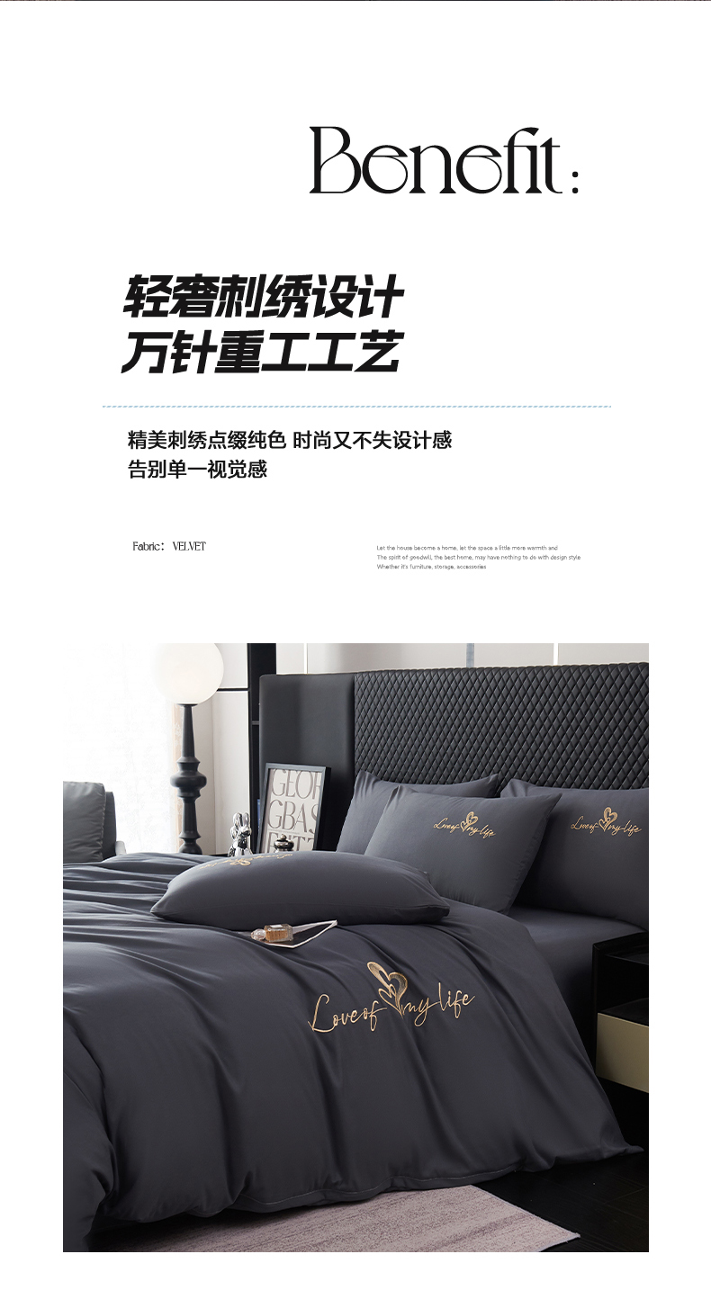 商品名称:鑫缘家纺 2025新款水洗磨毛纯色绣花四件套(110克) 石墨灰