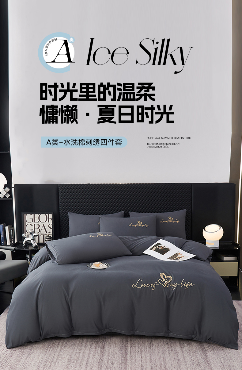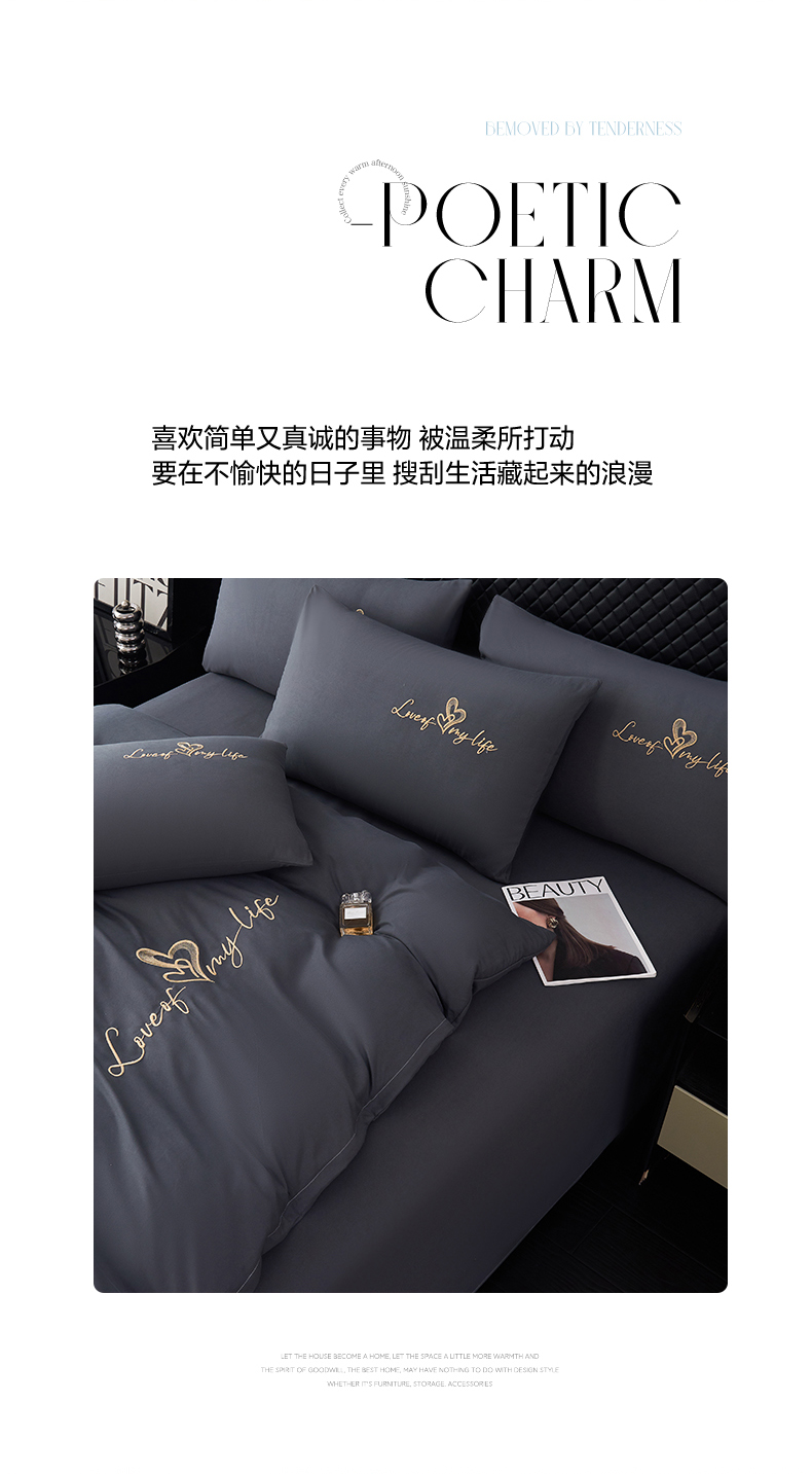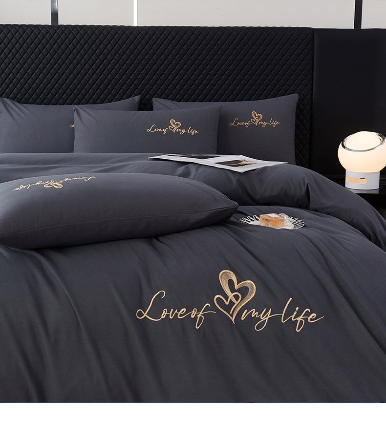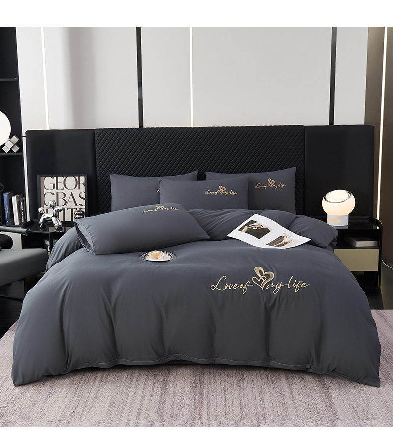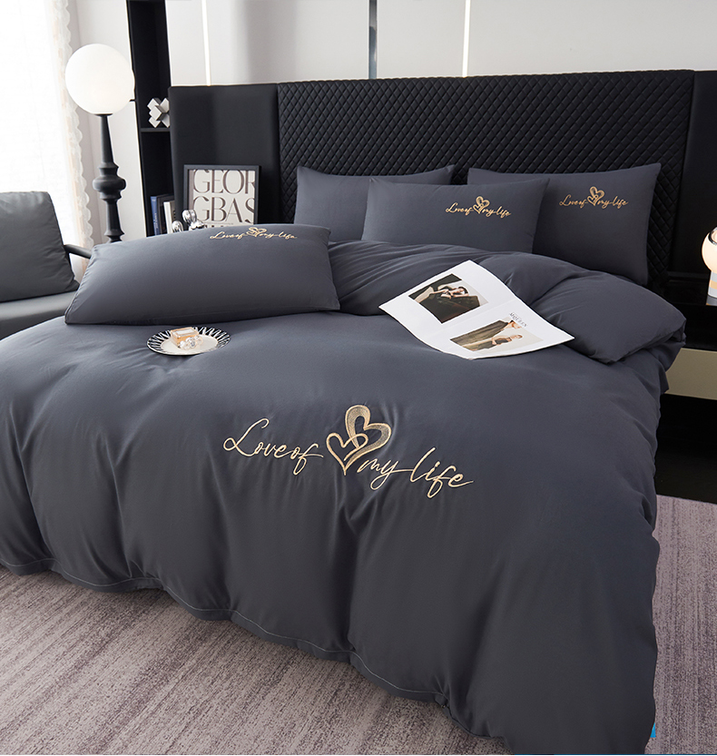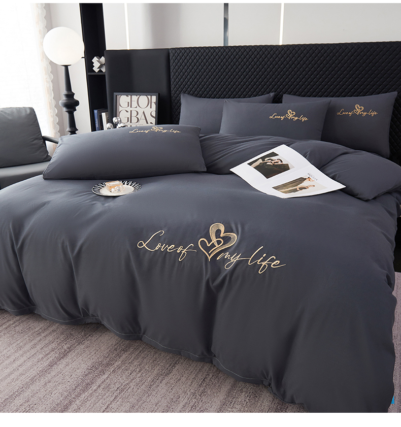 鑫缘家纺 2025新款水洗磨毛纯色绣花四件套(110克) 石墨灰
