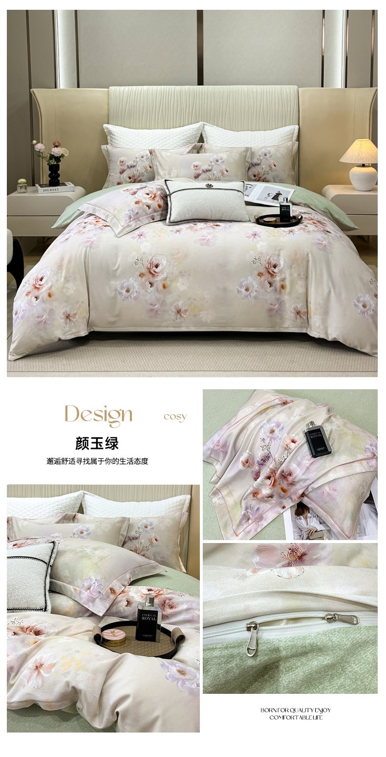 商品名称:凌鼎 2025新款100%全棉磨毛四件套数码印花加厚纯棉磨毛四件套 颜玉绿