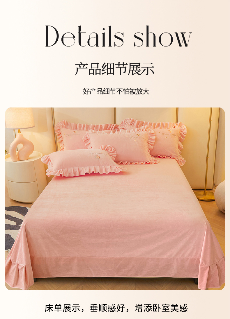 (总)怡源梦 2025新款A类牛奶绒夹棉床笠三件套-甜心公主系列,灰色,咖色,大红色,粉玉色,绿色,米白色,紫色