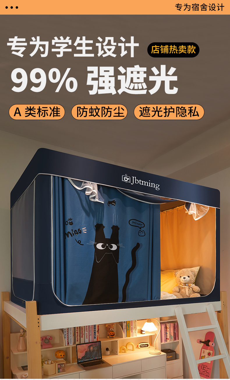 当前位置: 91家纺网 > 商品网购 > 床上用品 > 蚊帐 > 学生蚊帐 > 星际优品 2025新款学生蚊帐遮光床帘植绒环保遮光帘99%遮光-印花款学生蚊帐-一 黑猫-藏青
