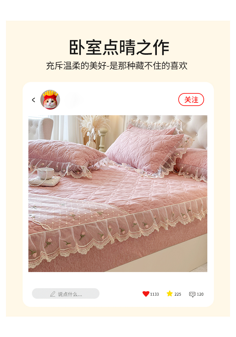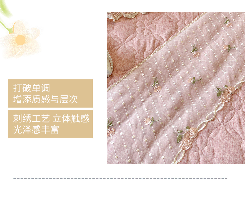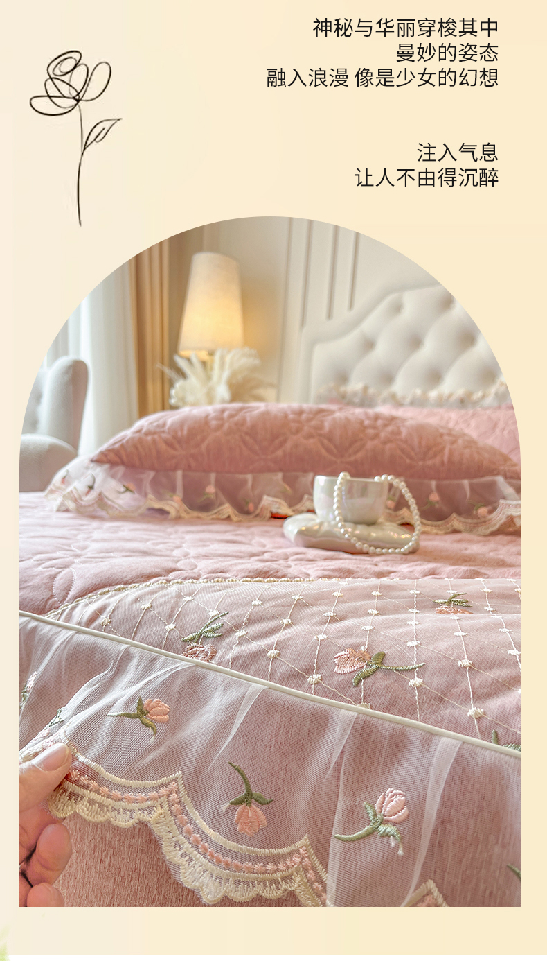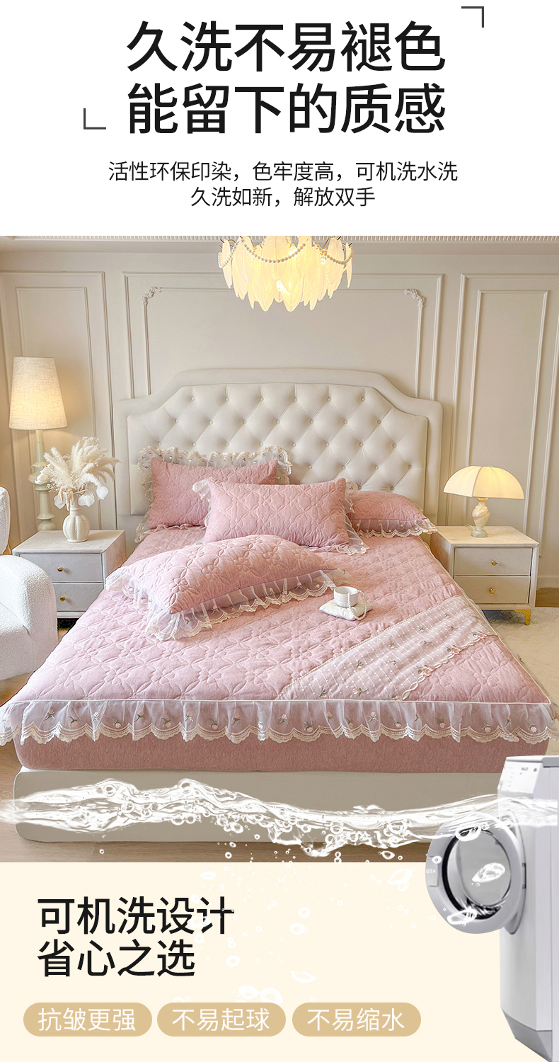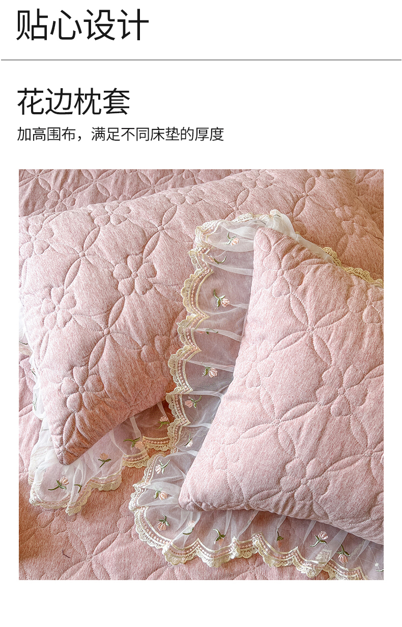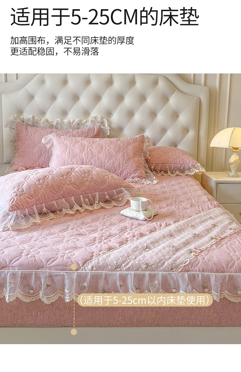 • 91家纺网 家纺一手货源 找家纺 麒豆豆 2025新款色织蕾丝边床裙款床笠-花亦然 花亦然-香妃粉