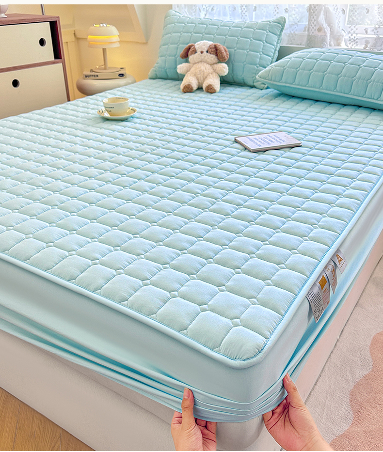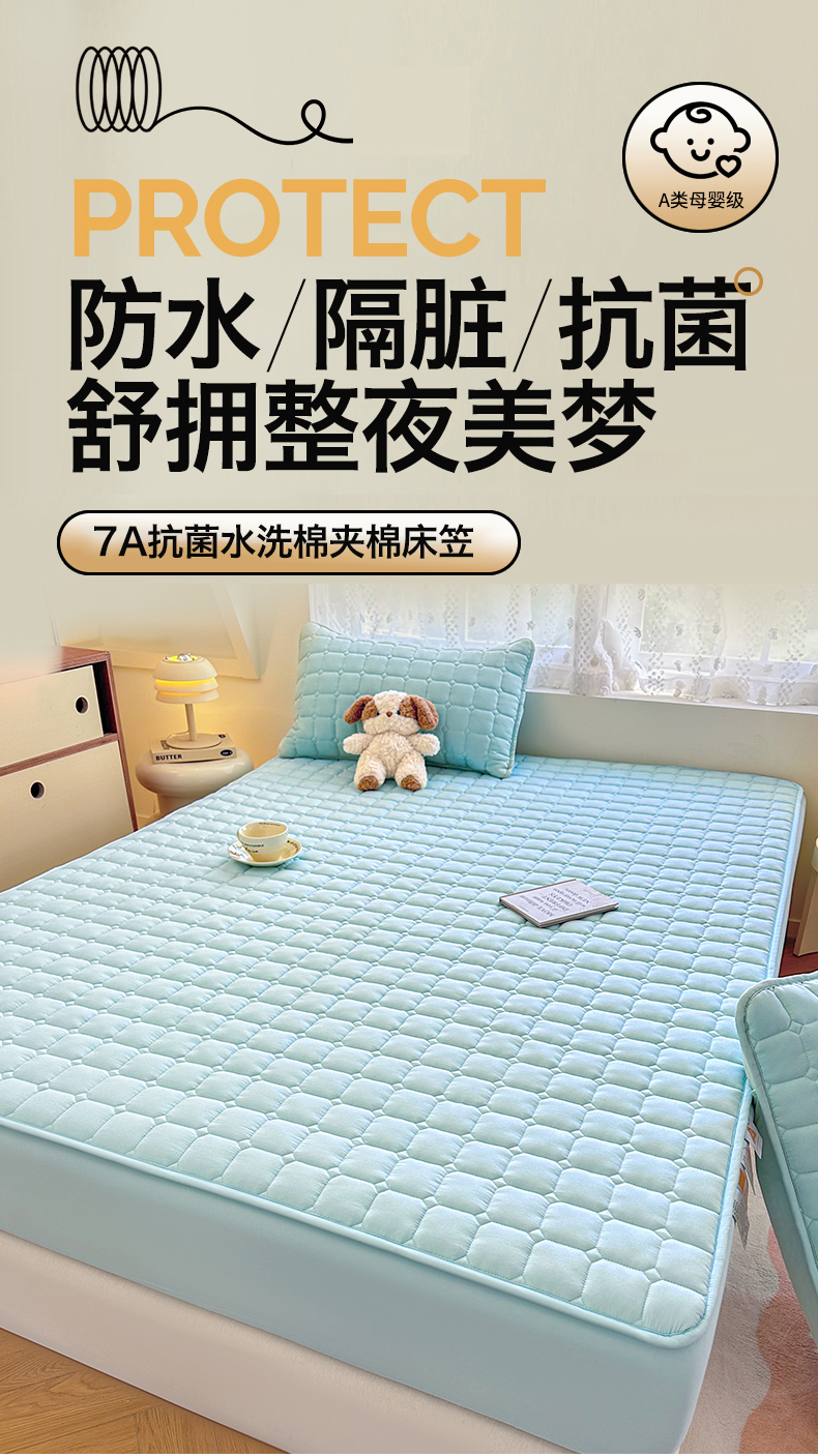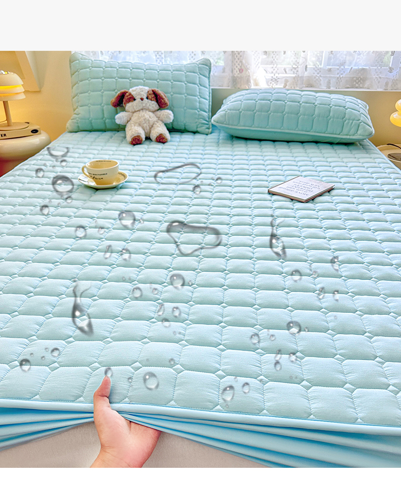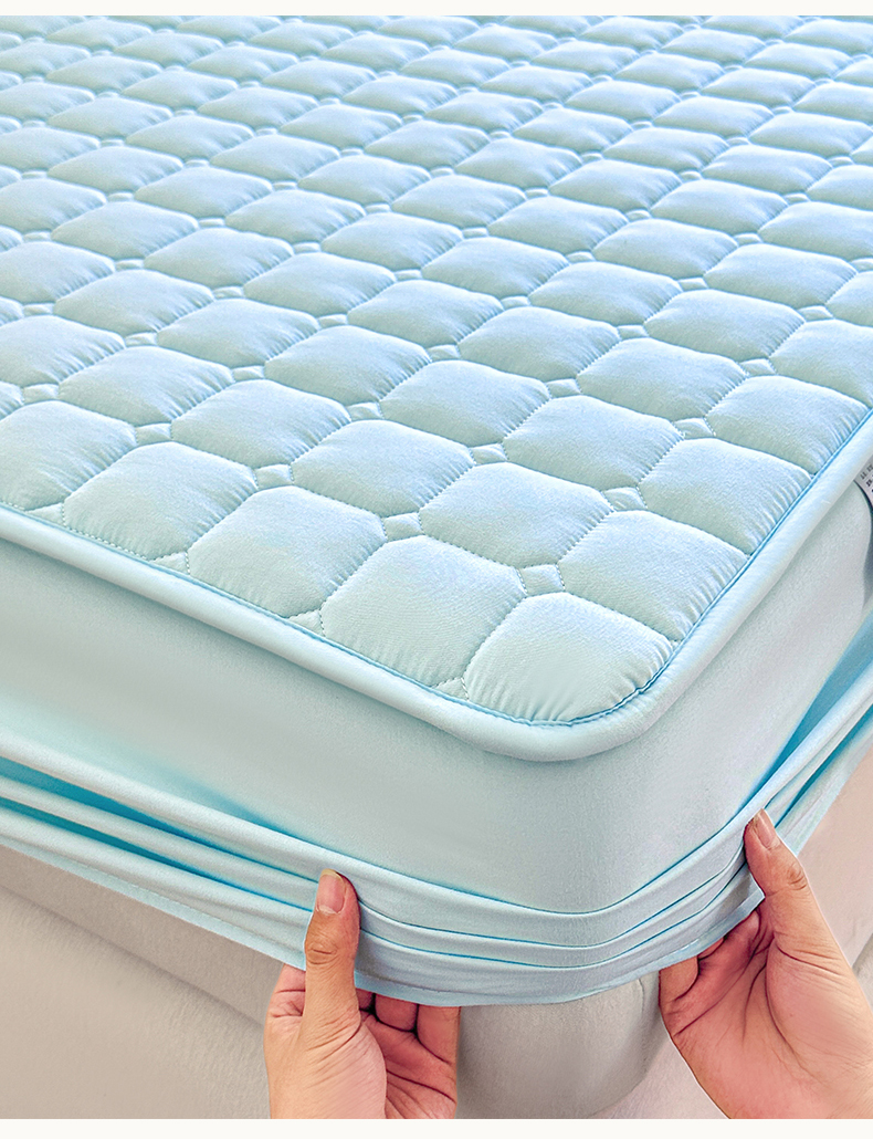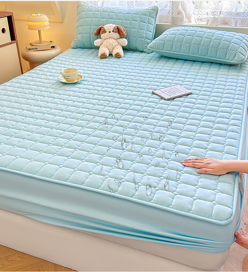 • 91家纺网 家纺一手货源 找家纺 雯豆家纺 2025新款简约防水款水洗棉夹棉床笠-雅韵 雅韵-淡水蓝