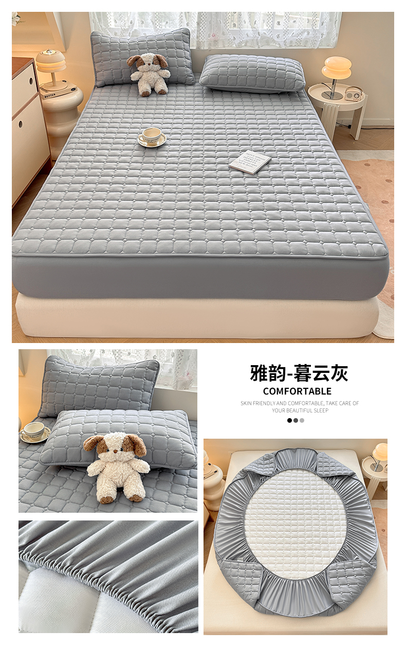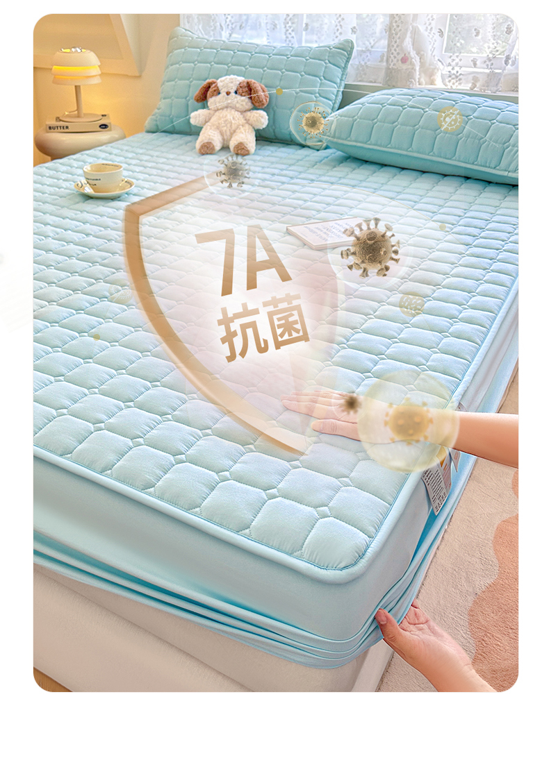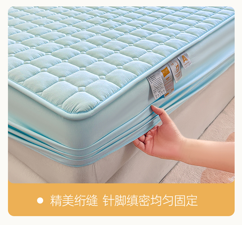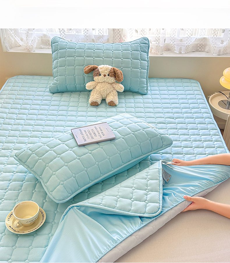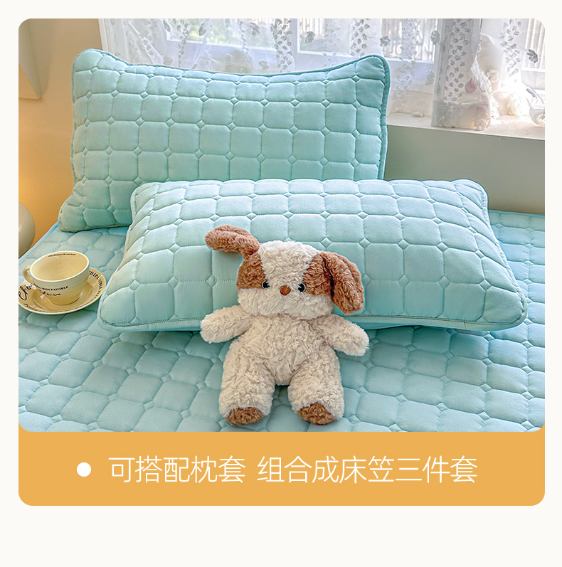 • 91家纺网 家纺一手货源 找家纺 雯豆家纺 2025新款简约防水款水洗棉夹棉床笠-雅韵 雅韵-淡水蓝