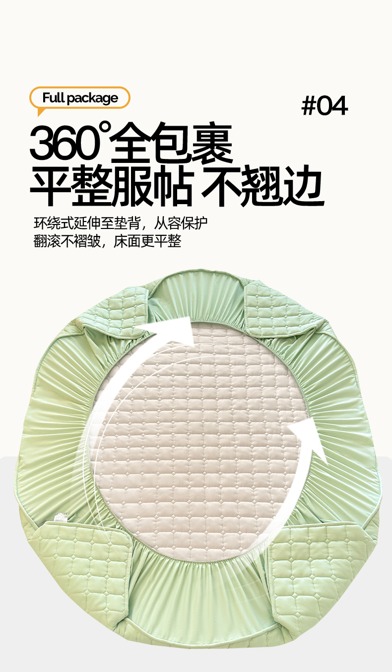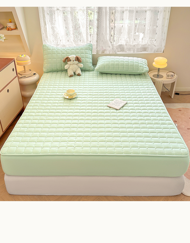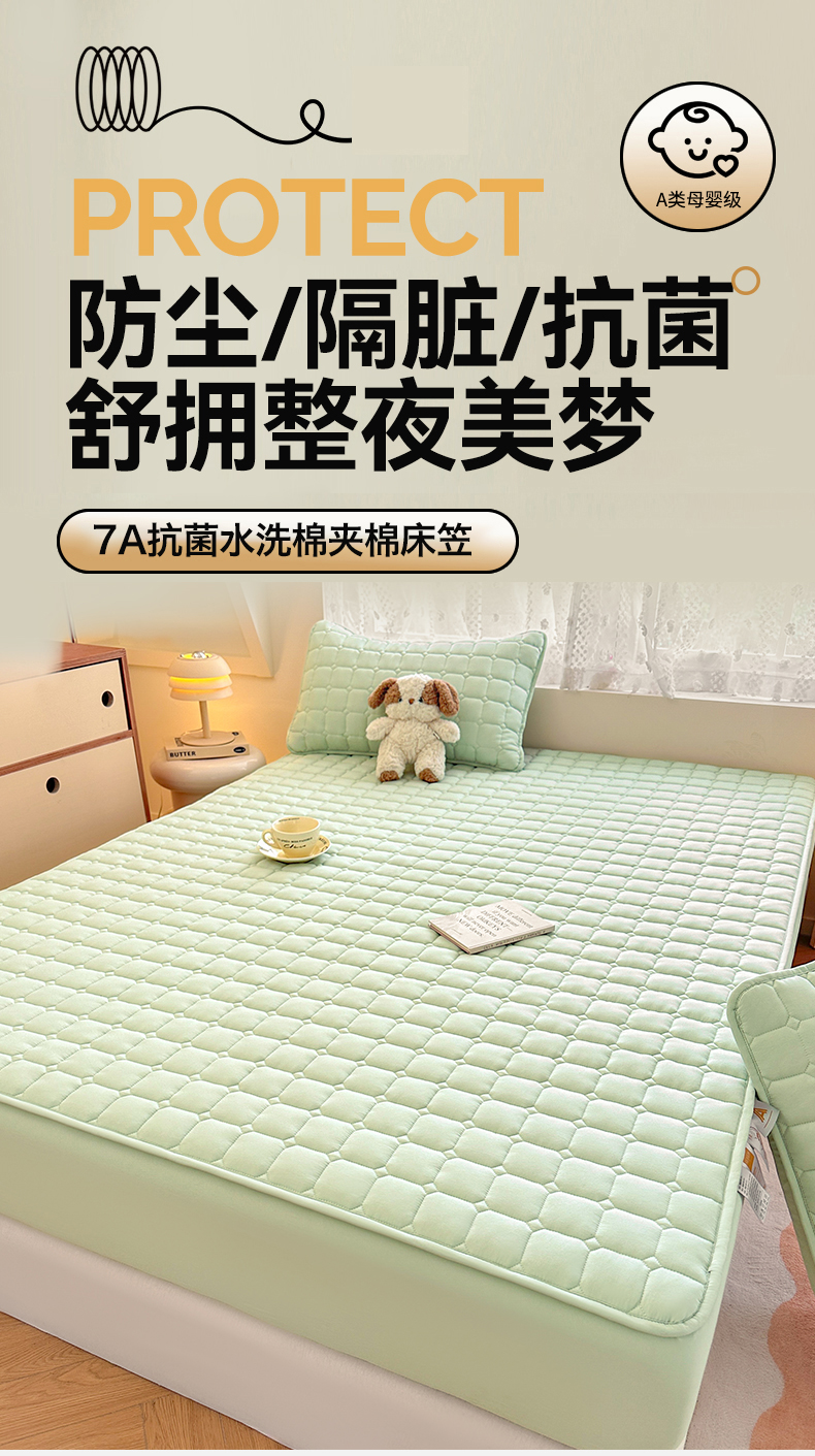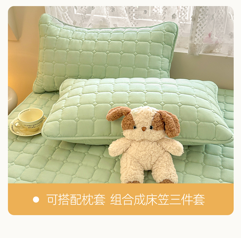 • 91家纺网 家纺一手货源 找家纺 雯豆家纺 2025新款简约水洗棉夹棉床笠-雅韵 雅韵-清雅绿