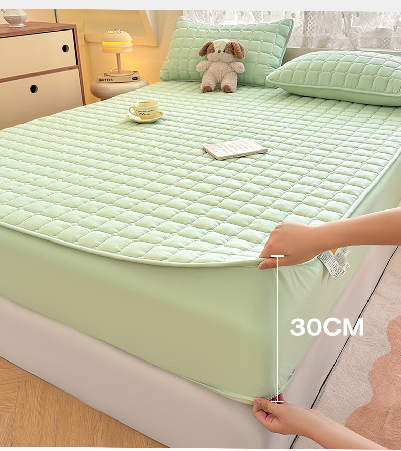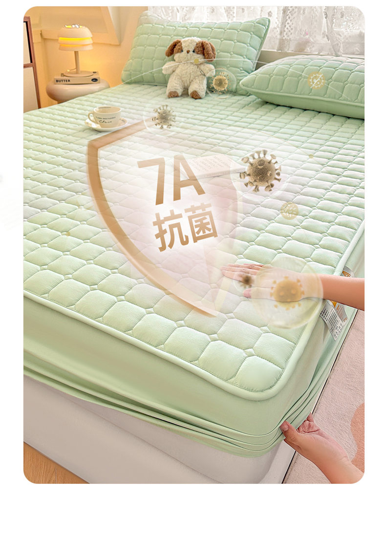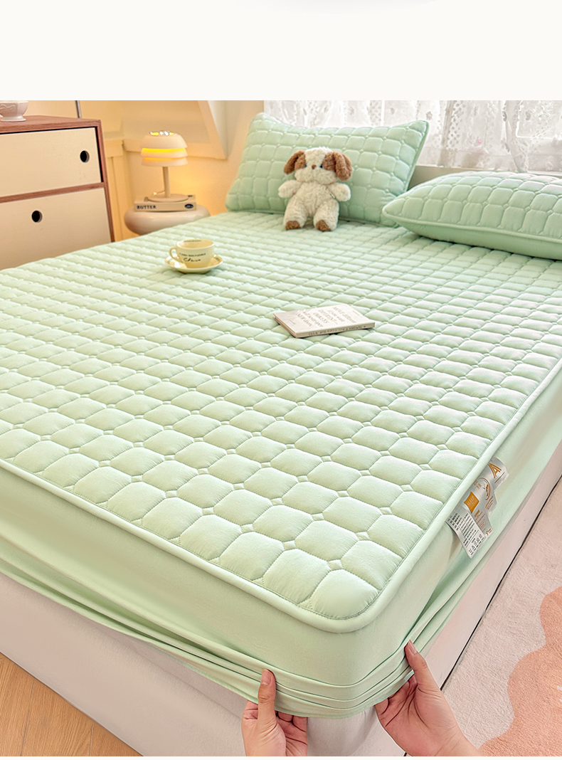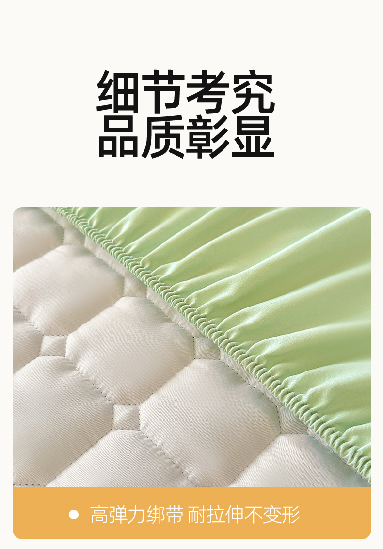 雯豆家纺 2025新款简约水洗棉夹棉床笠-雅韵 雅韵-清雅绿