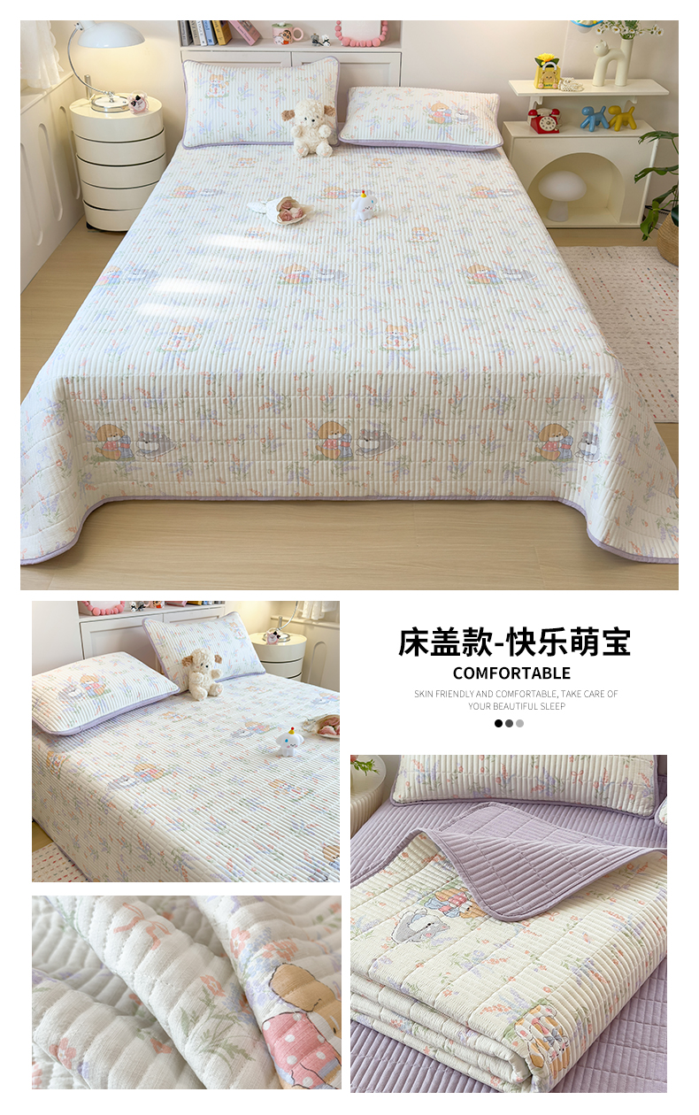 (总)雯豆家纺 2025新款复古风皱皱棉印花夹棉床笠三件套加厚床垫保护套,小南瓜,春日小狗,初夏,浪漫花语,爱尔蓝,初心,蝴蝶结小猫,花小愈,可爱TK,快乐萌宝,快乐时光,毛球团团,蘑菇仙子,奶萌小狗,小苍兰