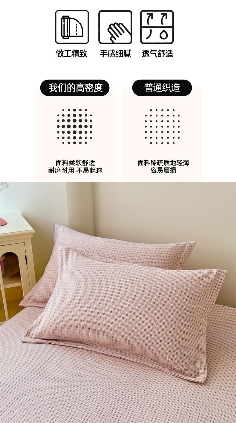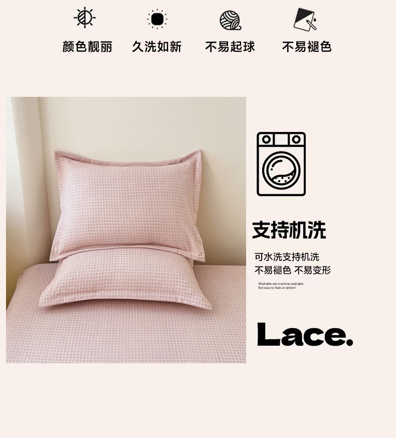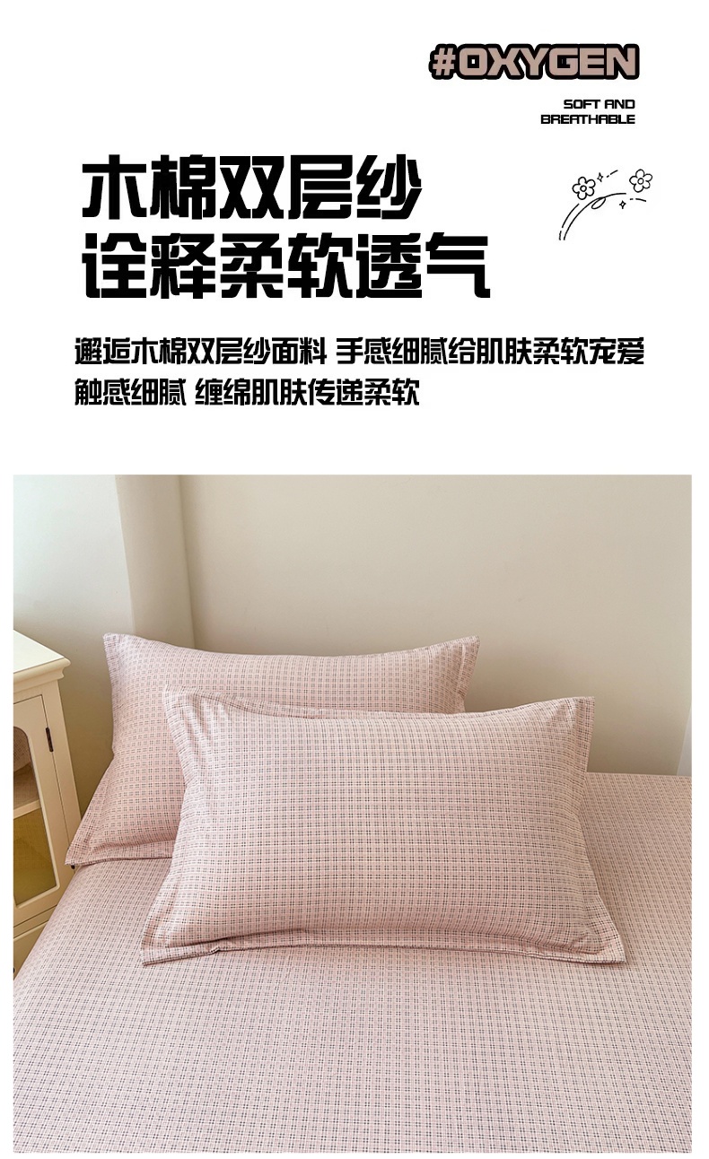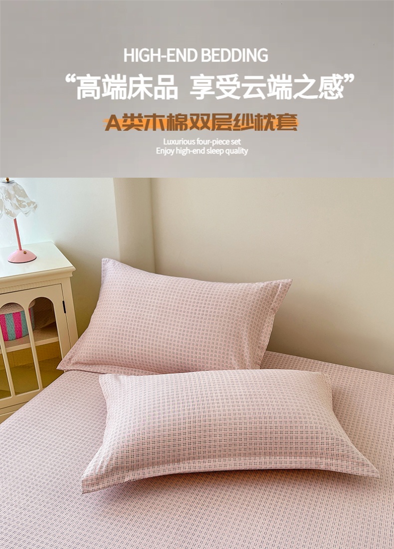 商品名称:梦舒羽 2025新款双层纱纯色格子枕套宿舍单人枕芯套内胆套一对装 莱茵粉格