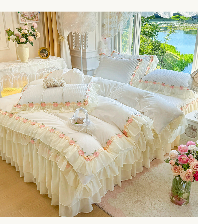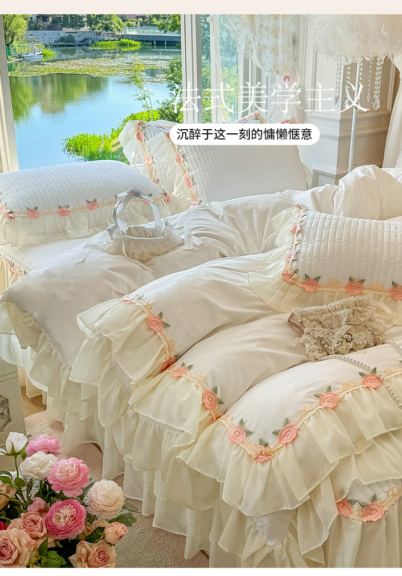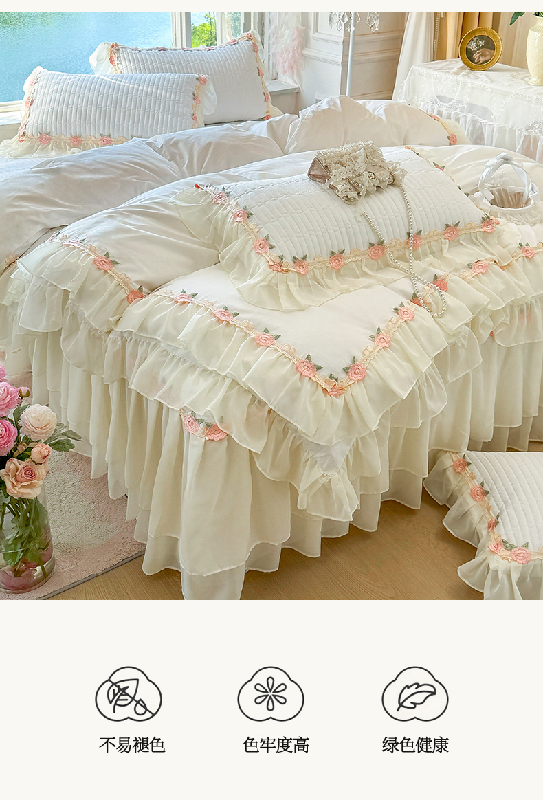 当前位置: 91家纺网 > 商品网购 > 床品套件 > 四件套 > 全棉普通四件套 > 虹星家纺 2025新款玫瑰花语全棉纯棉床裙款四件套 玫瑰花语-皓月白