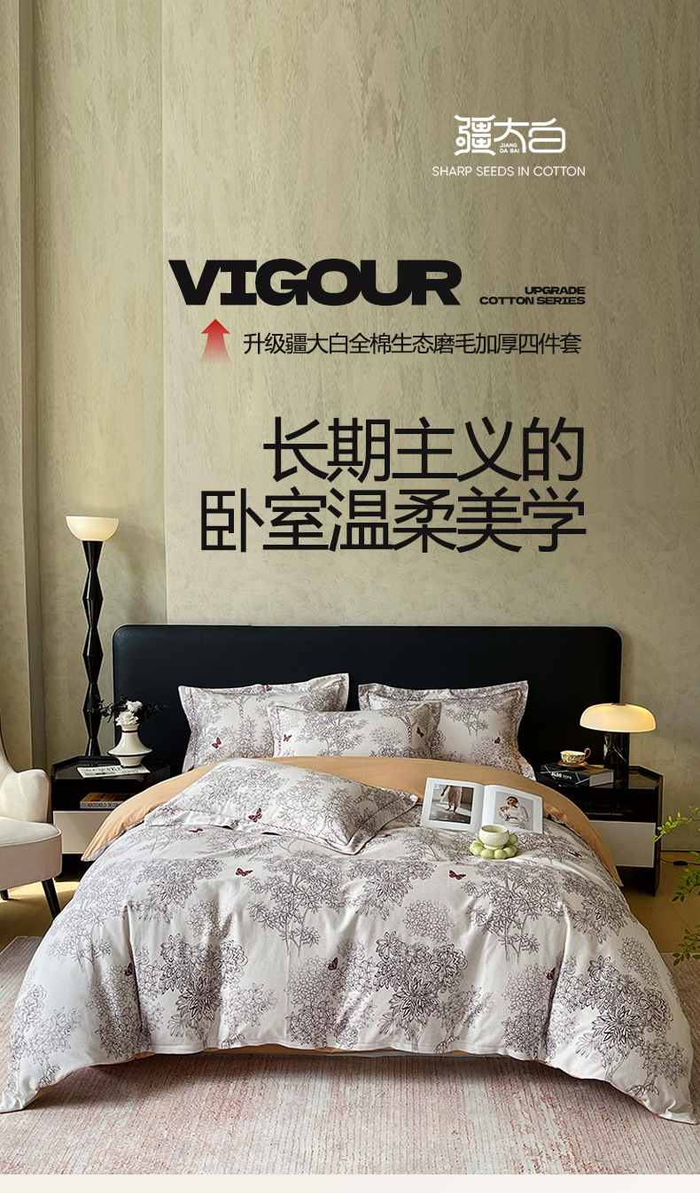商品名称:帅露家纺 2025新款升级疆大白全棉加厚生态磨毛四件套 初音琳浅