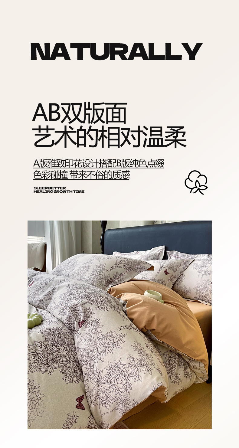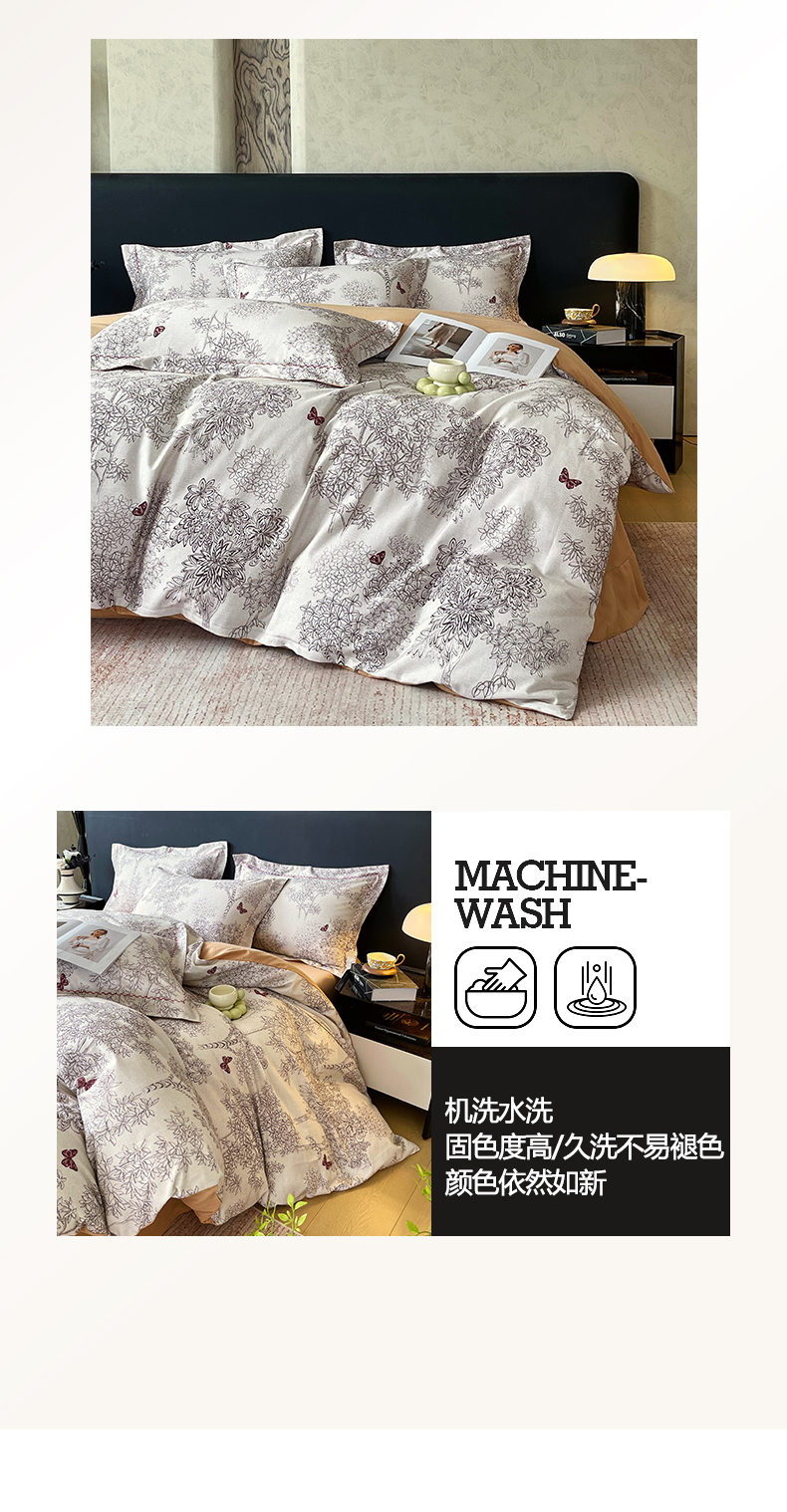 (总)帅露家纺 2025新款A类棉麻活性印染四件套系列,花间意境-红,花间意境-灰,花香满园-红,素锦-咖,香叶时代,映霜-灰,映霜-绿