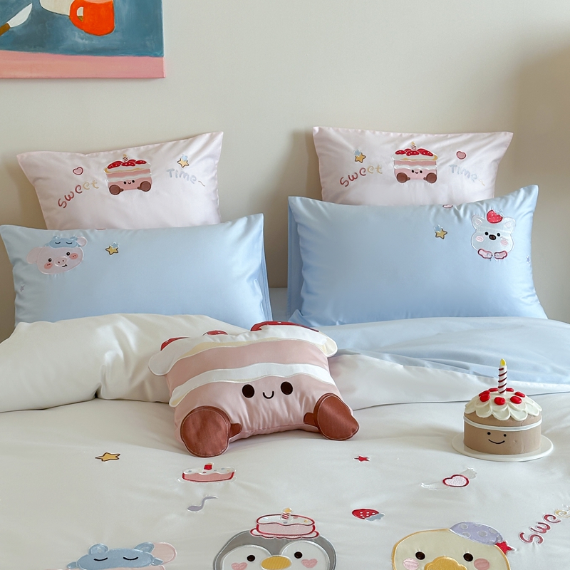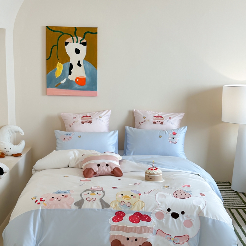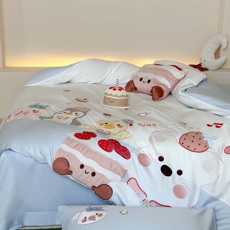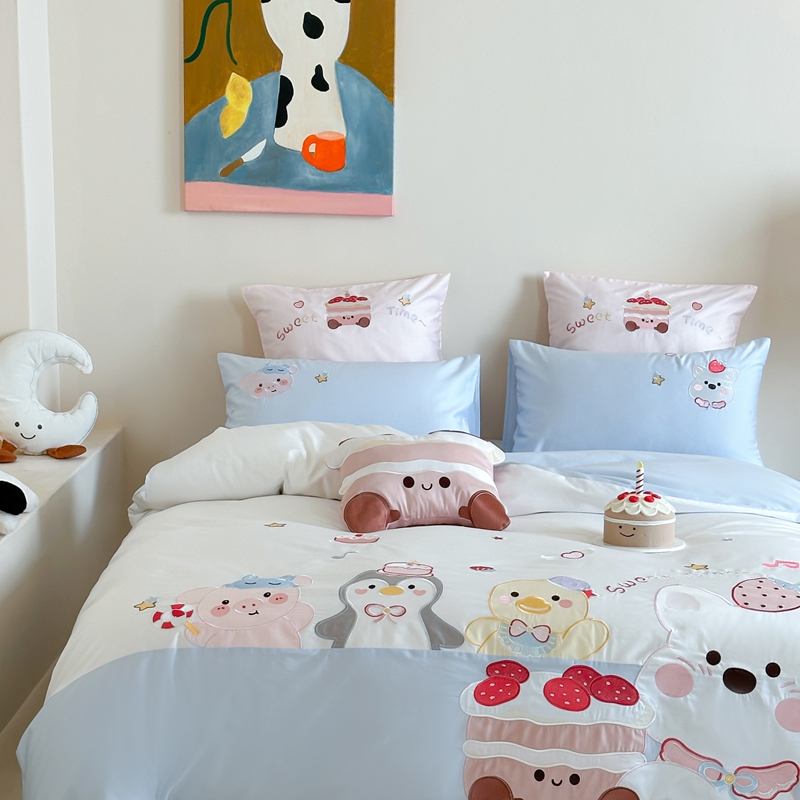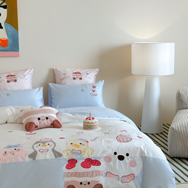 (总)紫桐2025新款长绒棉贴布绣四件套,黄油小熊 海盐蓝,黄油小熊 奶油黄,黄油小熊 芝芝粉