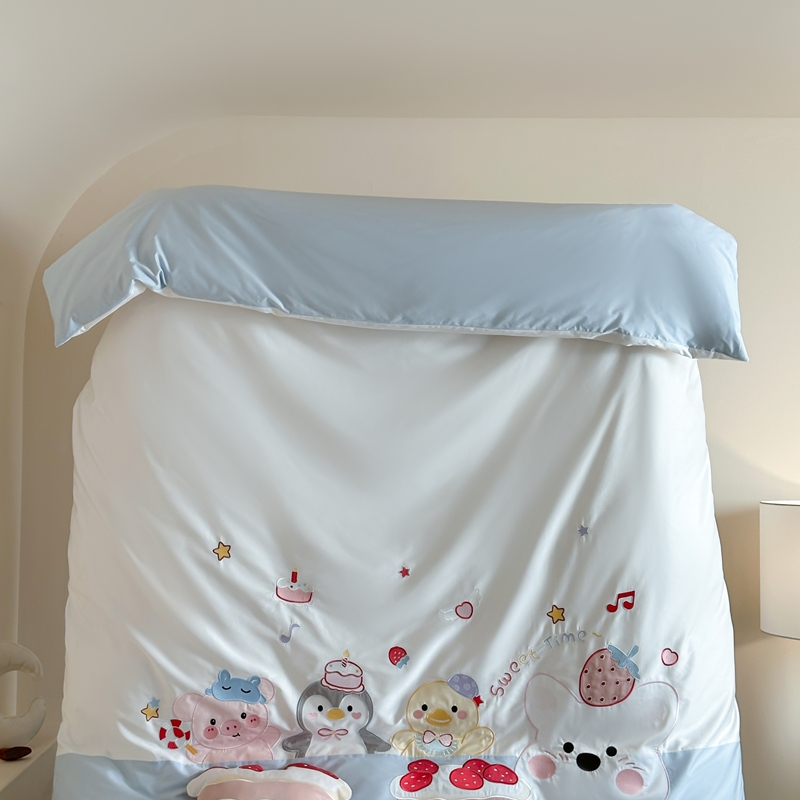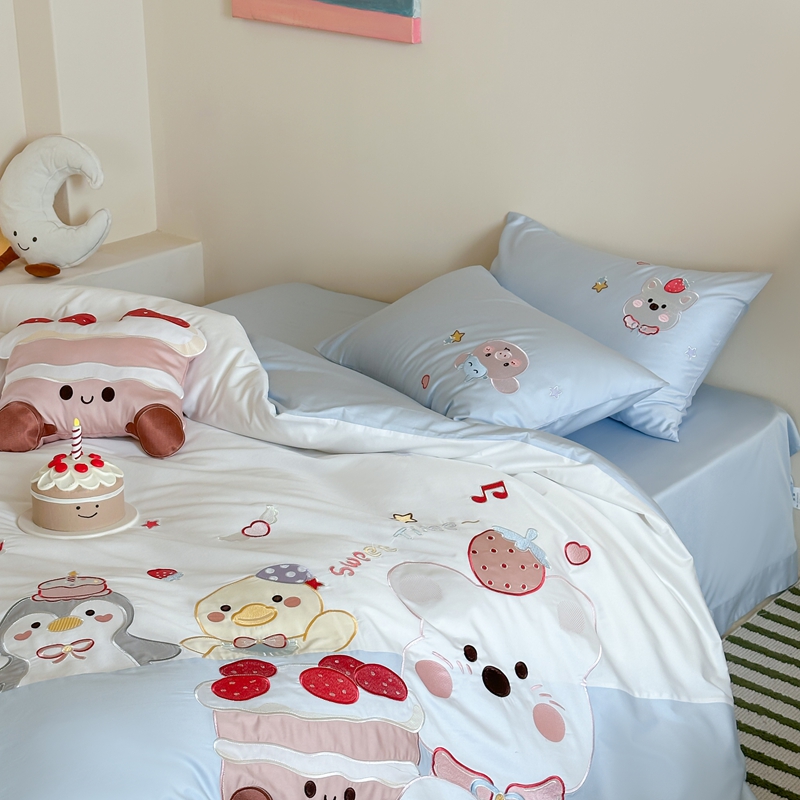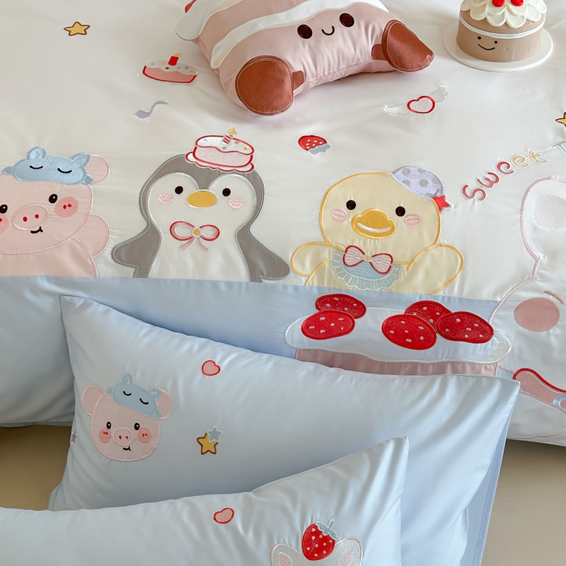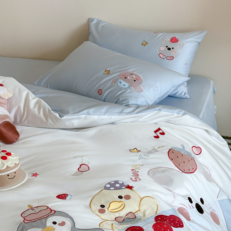 (总)紫桐 Lila lndus 2025新款双层纱贴布绣四件套,小考拉,小雪人,小熊,小企鹅,小鳄鱼,小狐狸