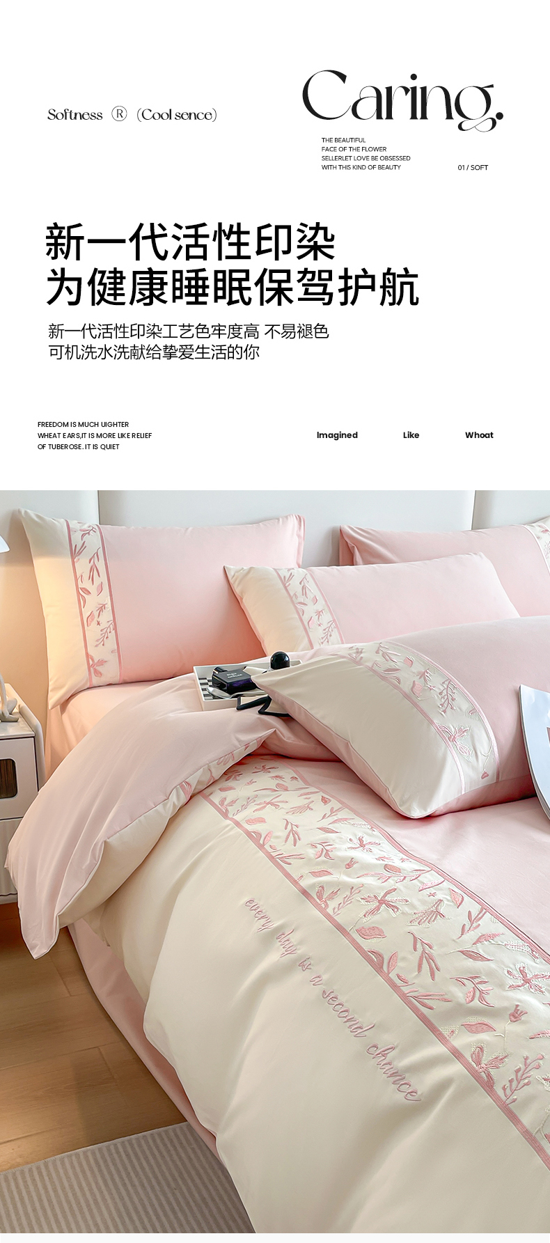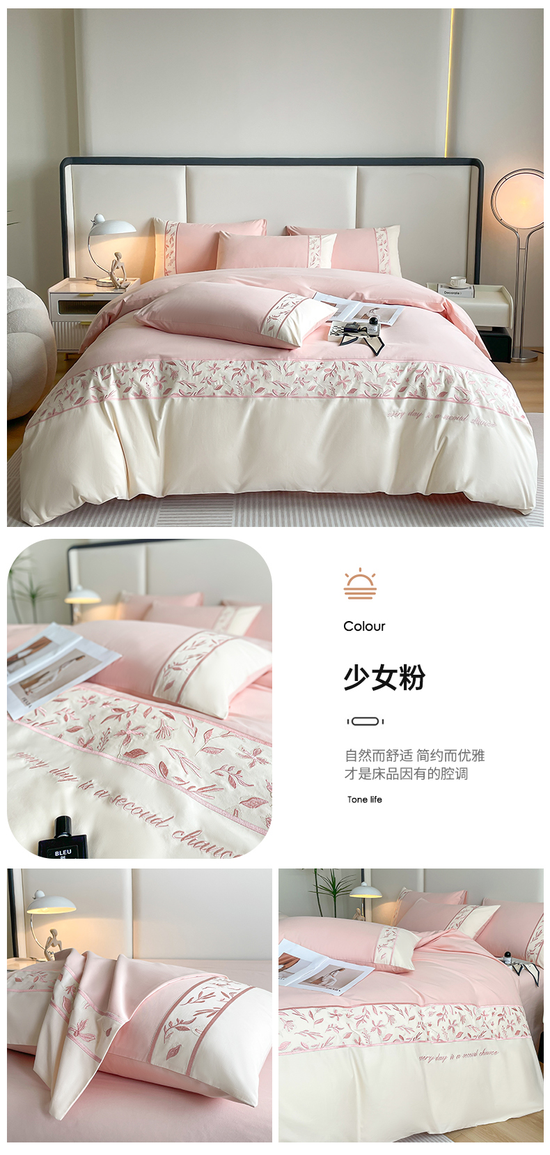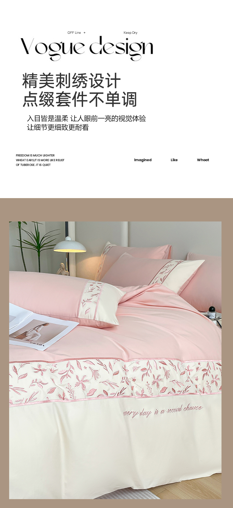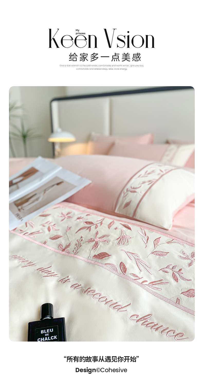 (总)桃园 2025新款纯棉全棉长绒棉刺绣绣花四件套(高端礼盒)-叶语,叶语-飘蓝,叶语-轻奢粉,叶语-绅士灰,叶语-香槟金