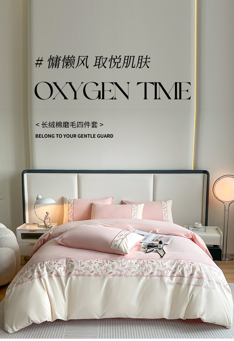 桃园 2025新款纯棉全棉长绒棉磨毛不掉毛四件套高端礼盒--花漾系列(包含买家秀) 少女粉