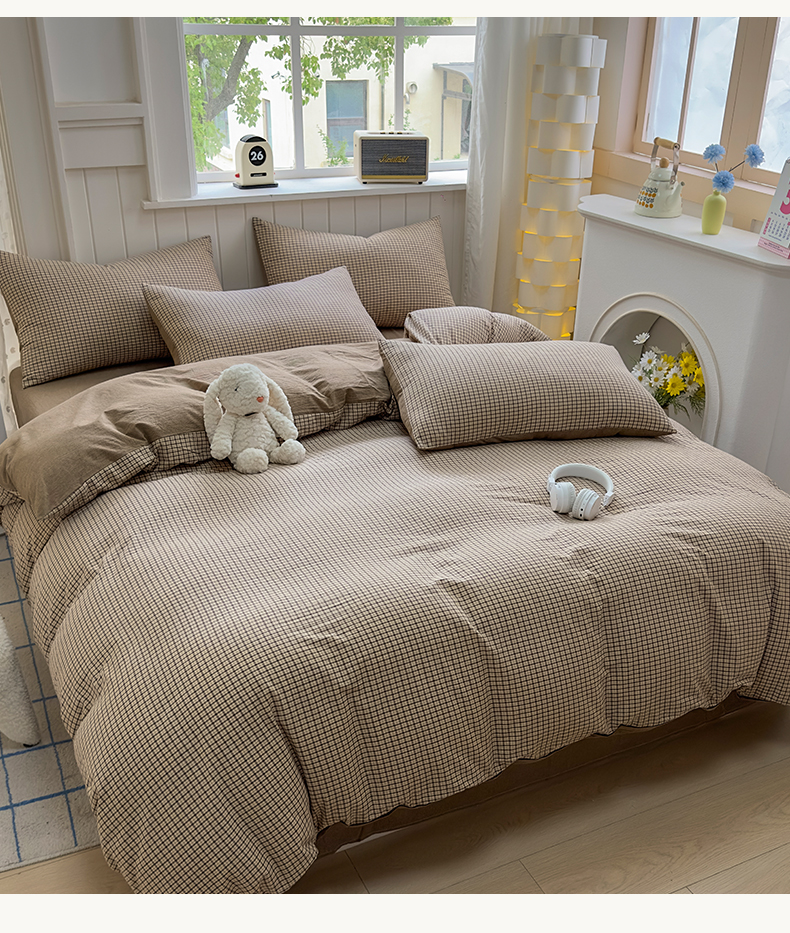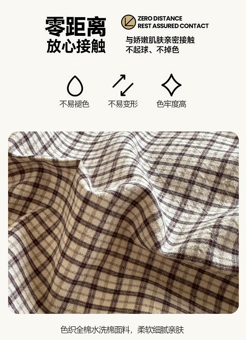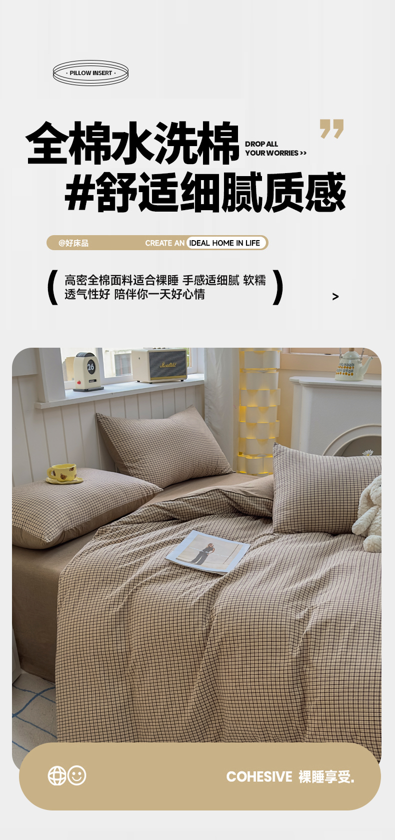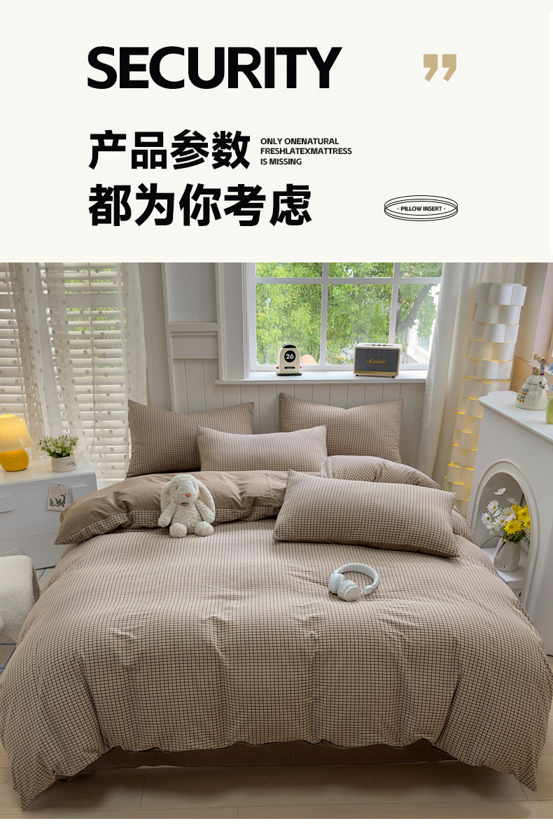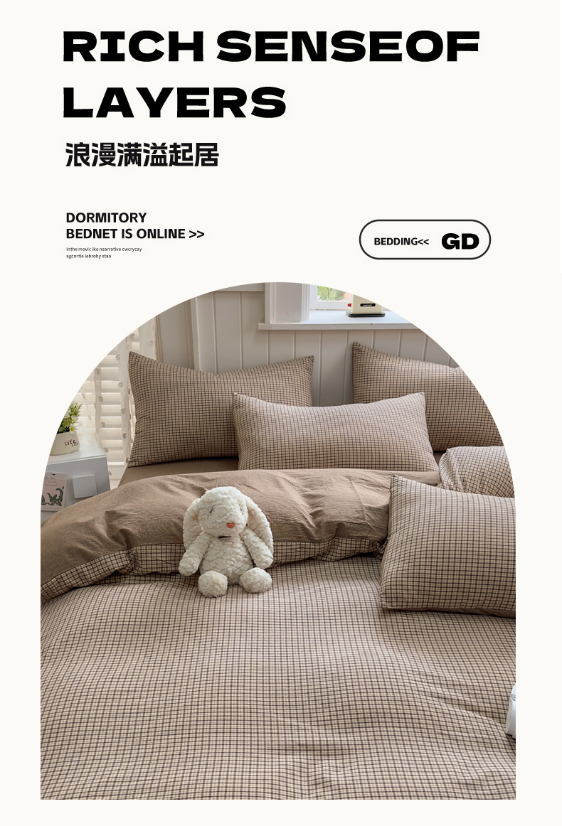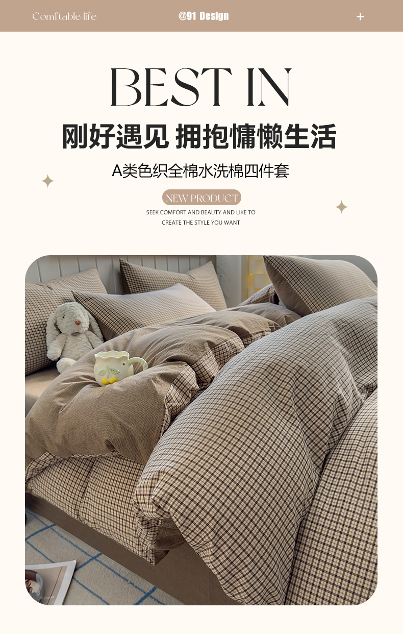 当前位置: 91家纺网 > 商品网购 > 床品套件 > 四件套 > 水洗棉四件套 > 晚依家纺 2025新款A类全棉色织水洗棉四件套纯棉格子纯色被套学生宿舍三件套定制定做 沐风-米咖
