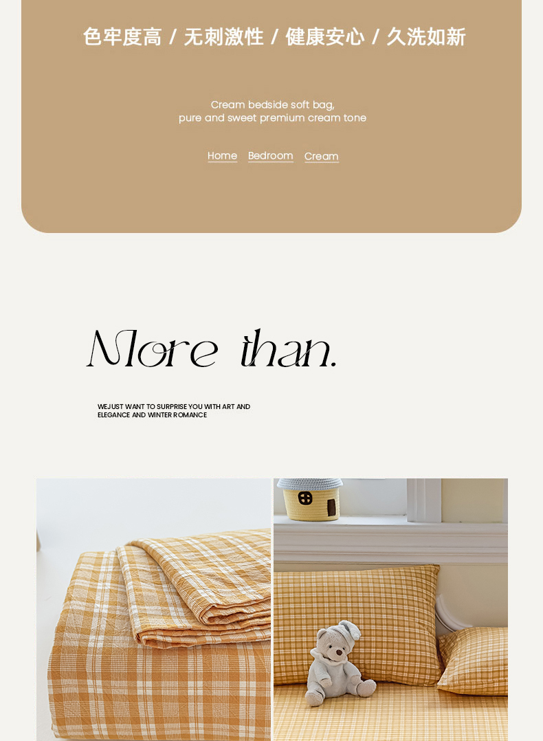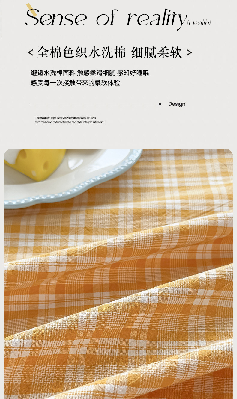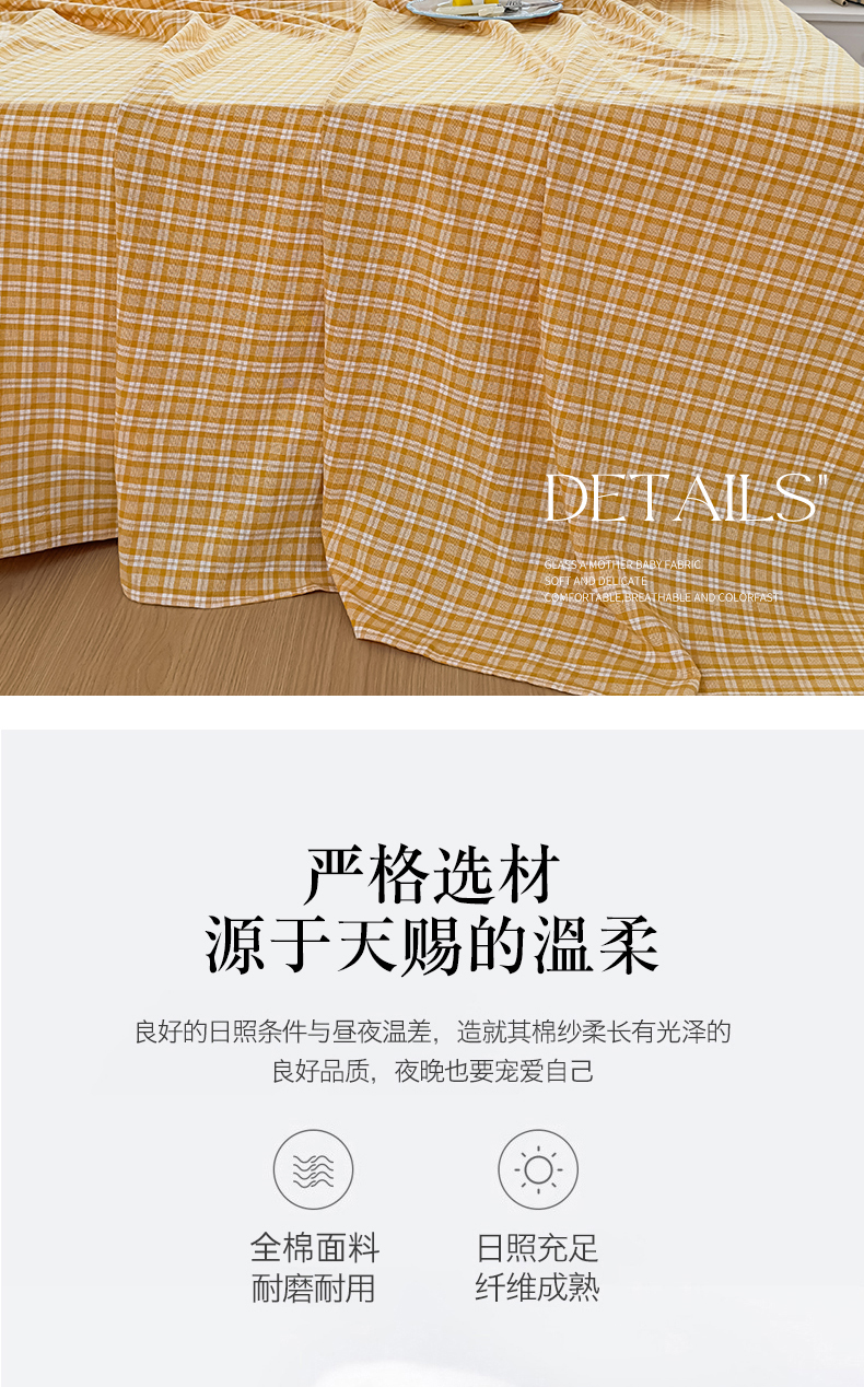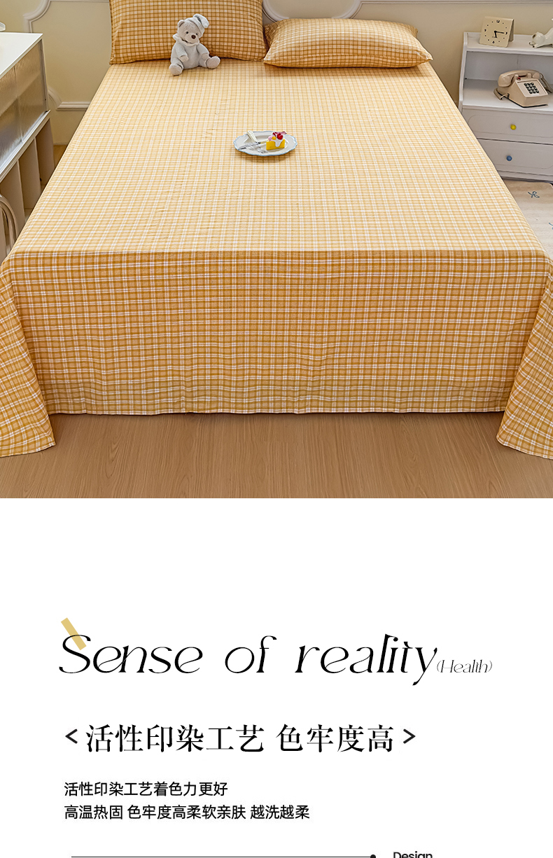 商品名称:菡宝 2025新款全棉纯棉色织水洗棉单床单 黄格调