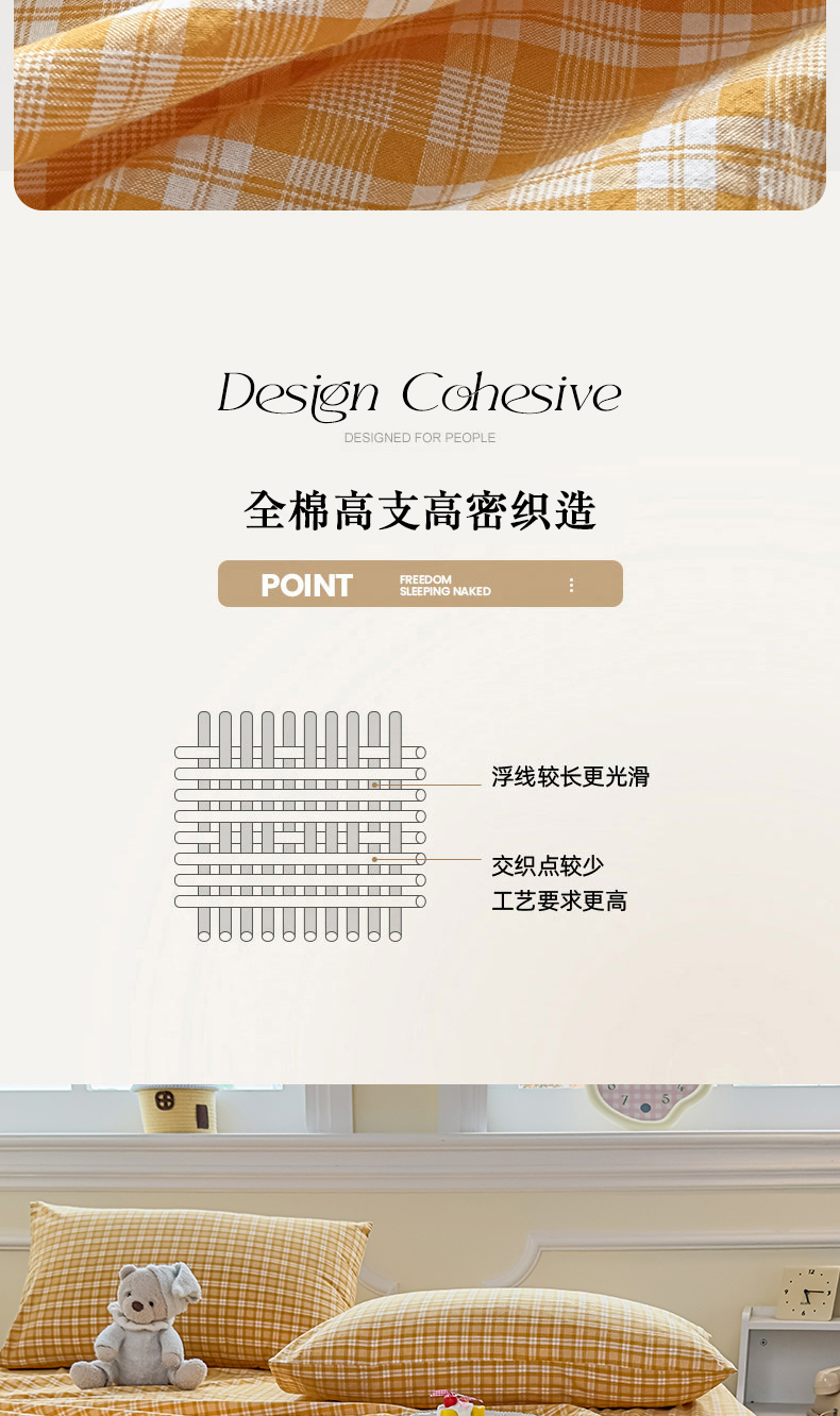 (总)菡宝 2025新款全棉纯棉色织小提花四件套支持定制定做尺寸,暴力熊卡其,暴力熊绿,大方块灰,大方块紫,千鸟格白,千鸟格灰,千鸟格绿,四叶草卡其