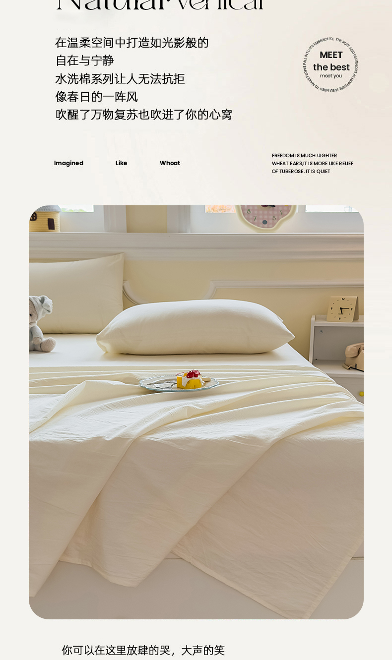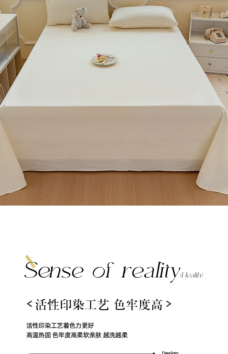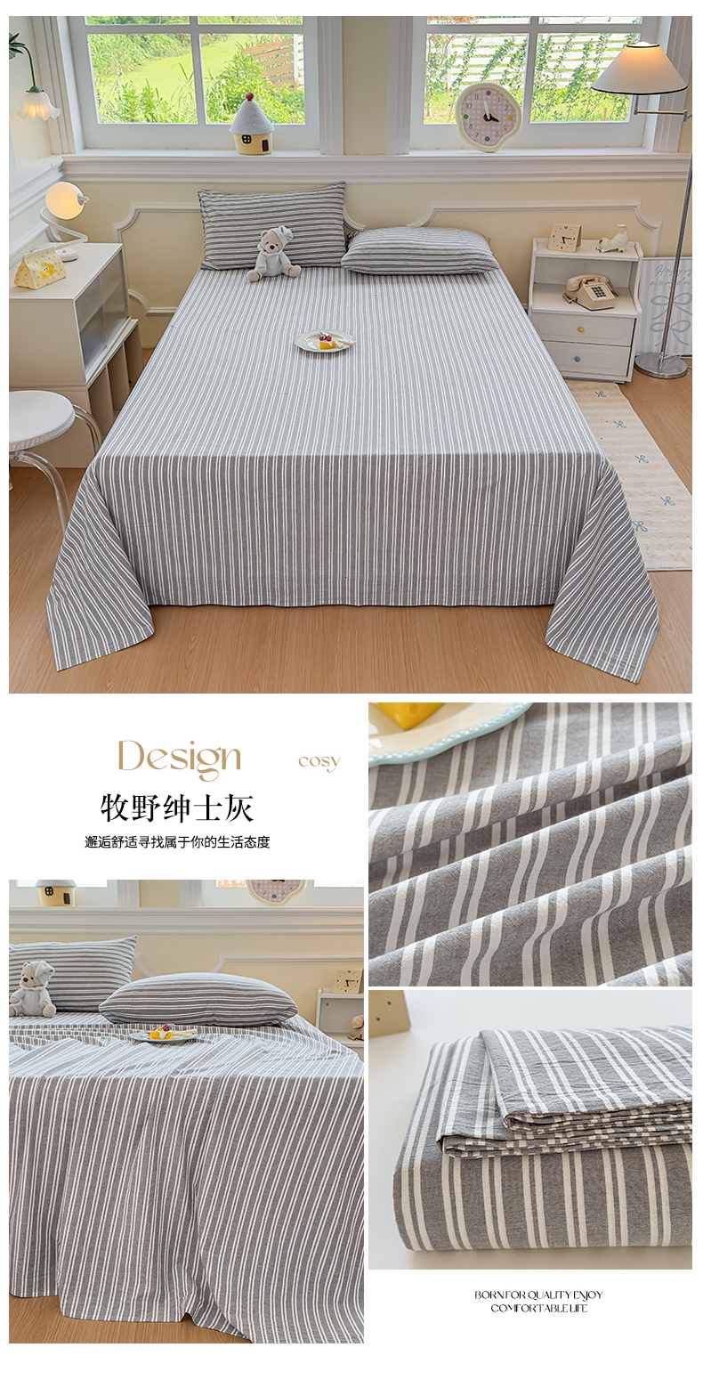 商品名称:菡宝 2025新款全棉纯棉色织水洗棉单床单 米白青年