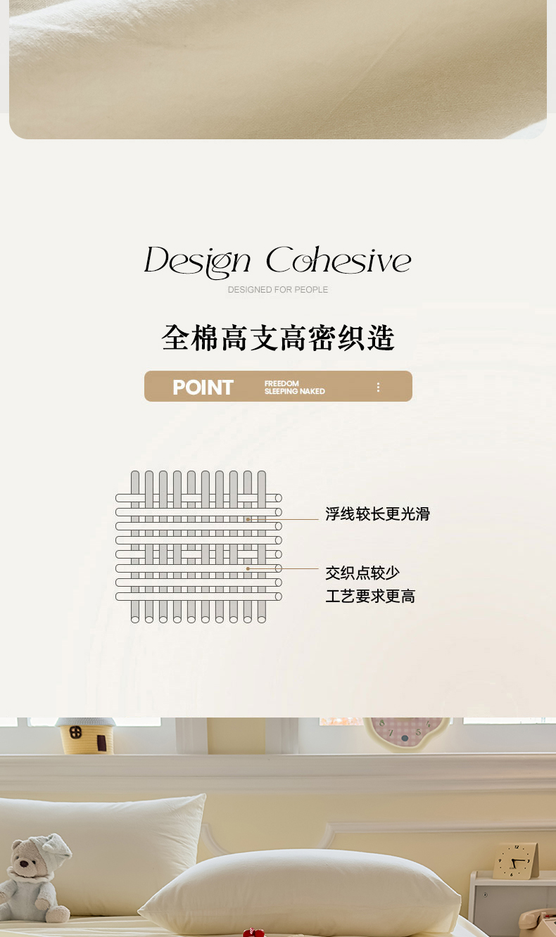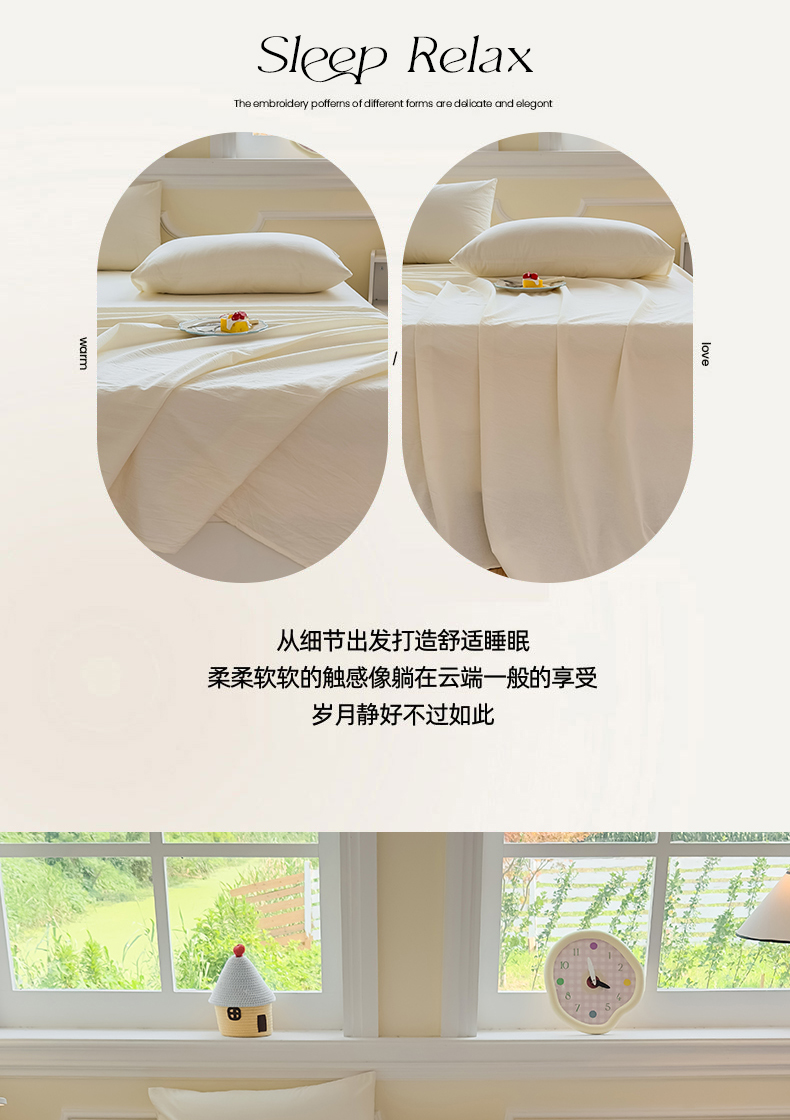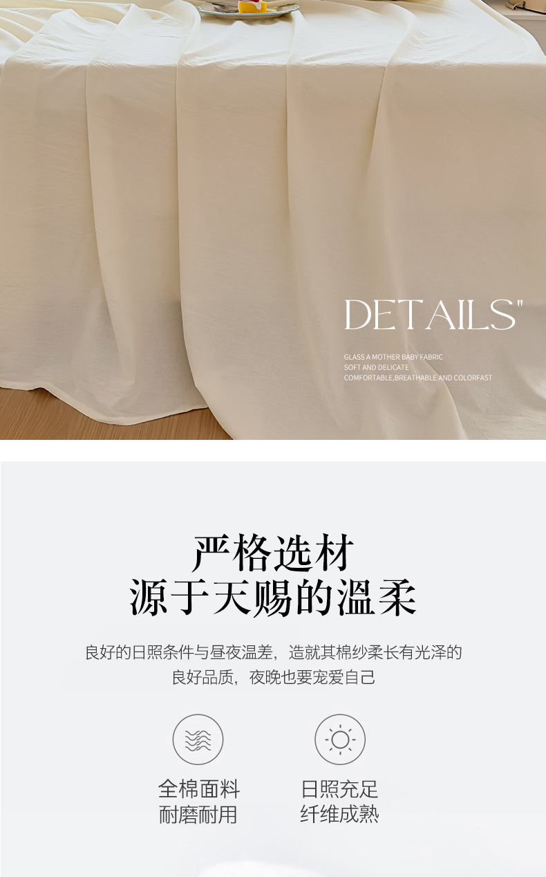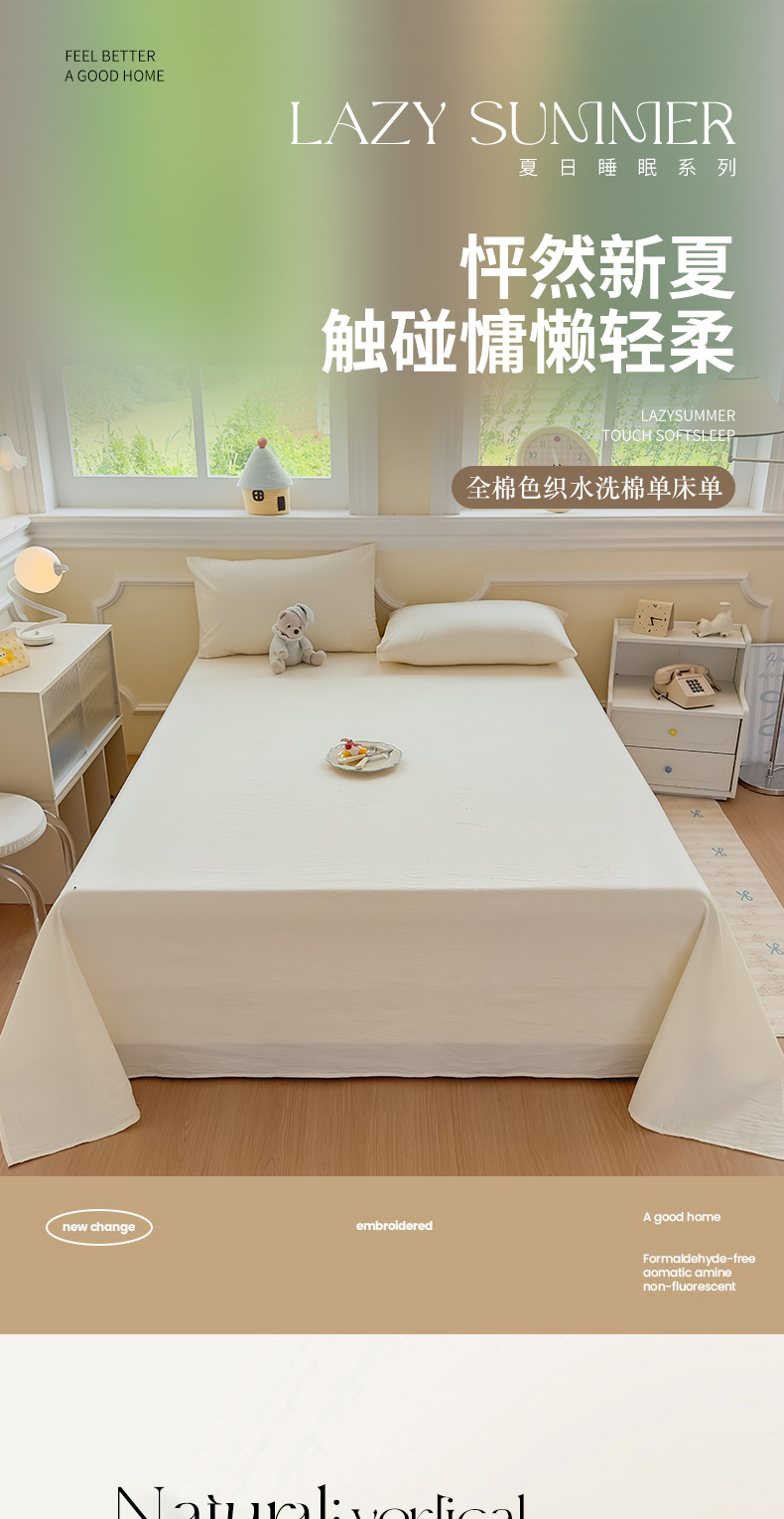 商品名称:菡宝 2025新款全棉纯棉色织水洗棉单床单 米白青年