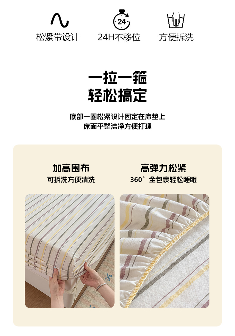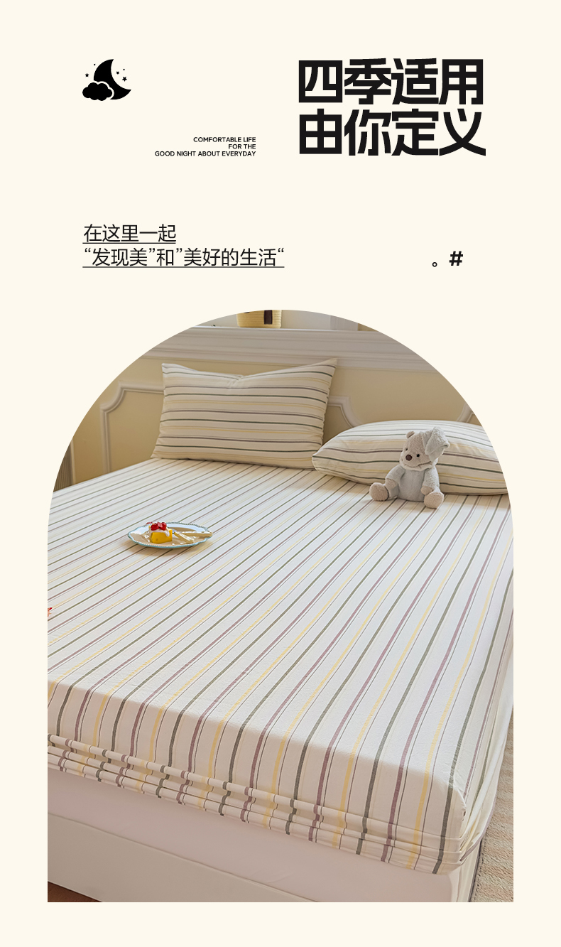 • 91家纺网 家纺一手货源 找家纺 菡宝 2025新款全棉纯棉色织水洗棉单单床笠 且乐紫青年