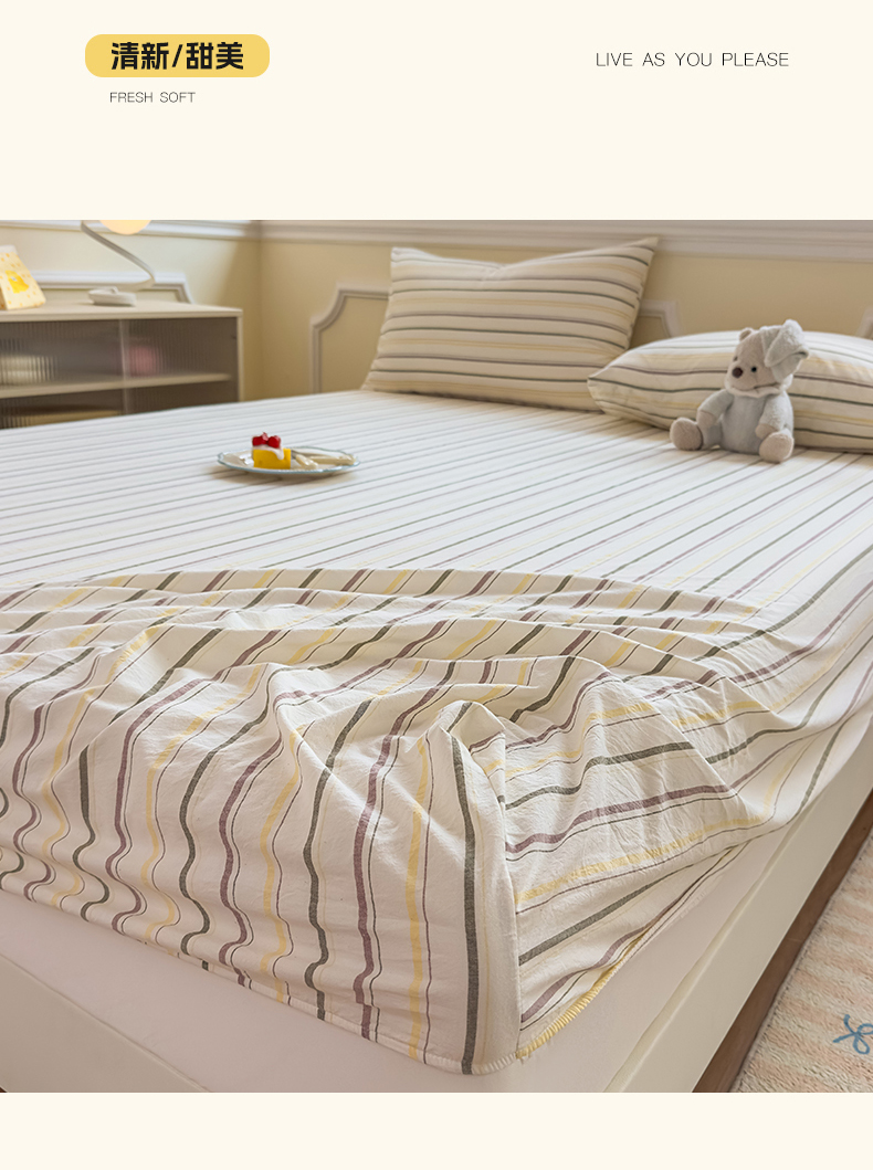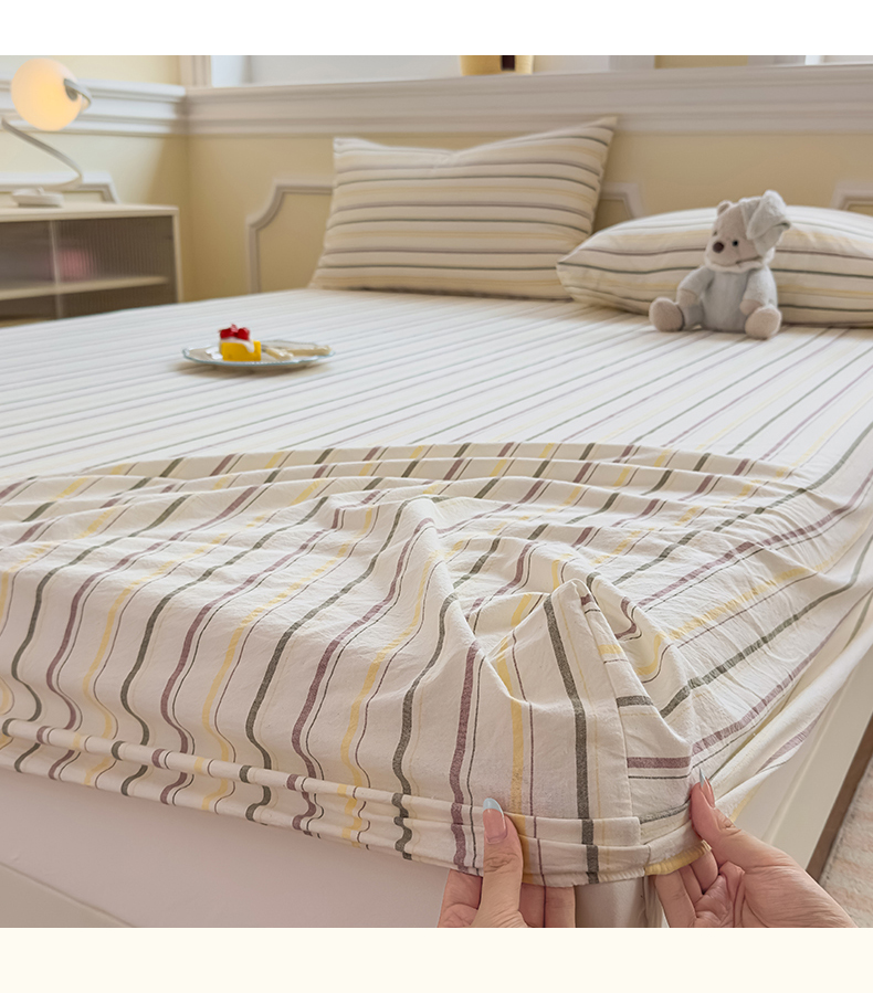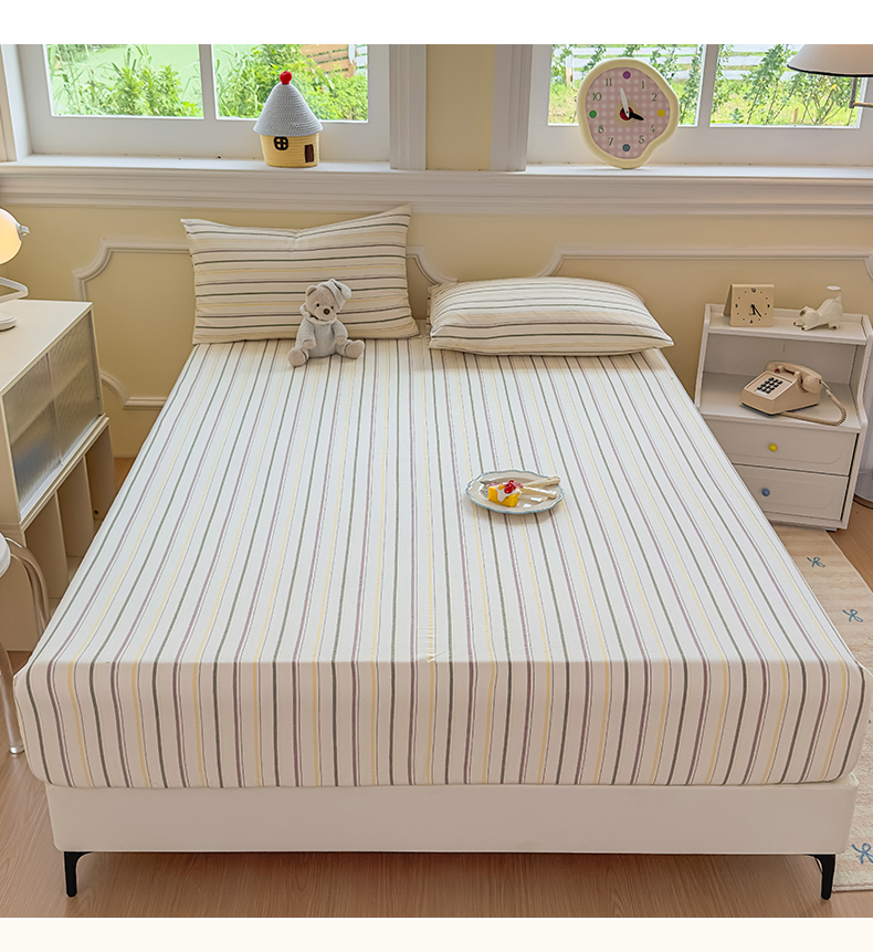 菡宝 2025新款全棉纯棉色织水洗棉单单床笠 且乐紫青年