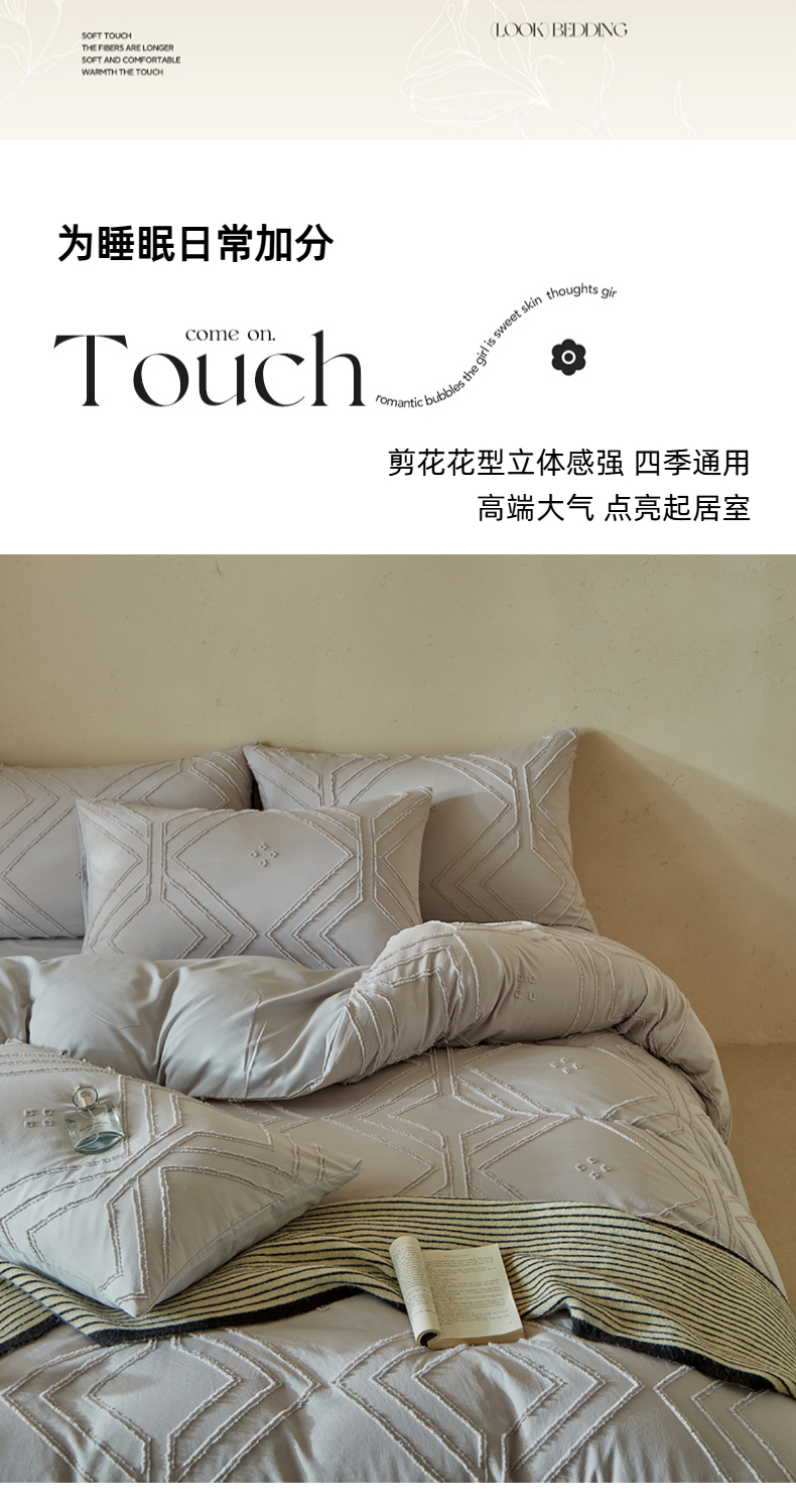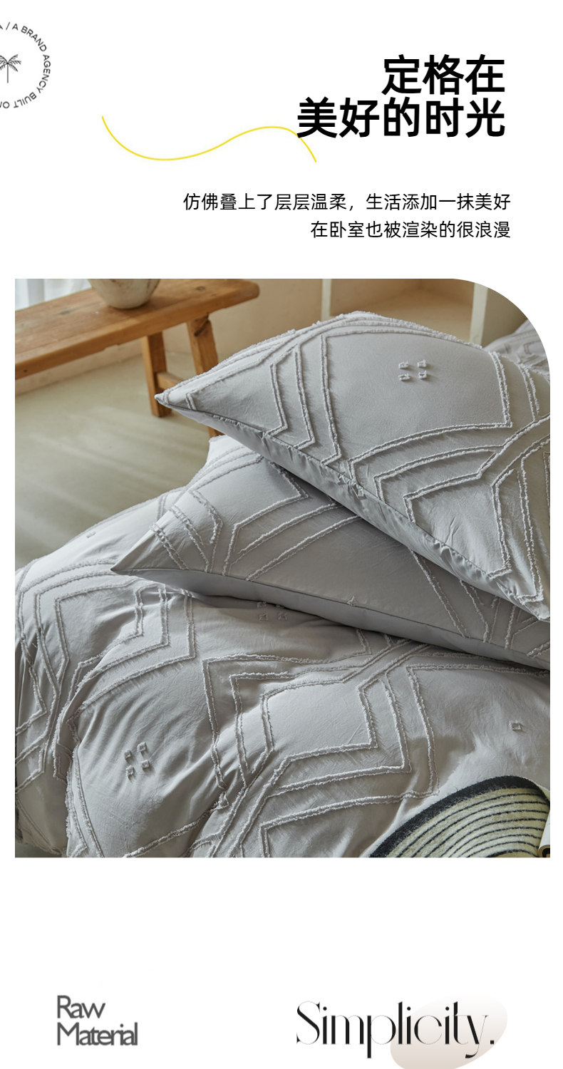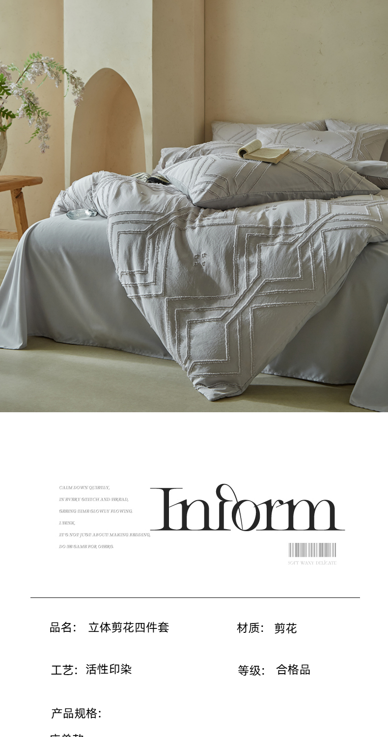 当前位置: 91家纺网 > 商品网购 > 床品套件 > 四件套 > 其它四件套 > 缘生活 2025新款立体剪花A面剪花面料B面加厚磨毛布料四件套 剪花方格-浅灰