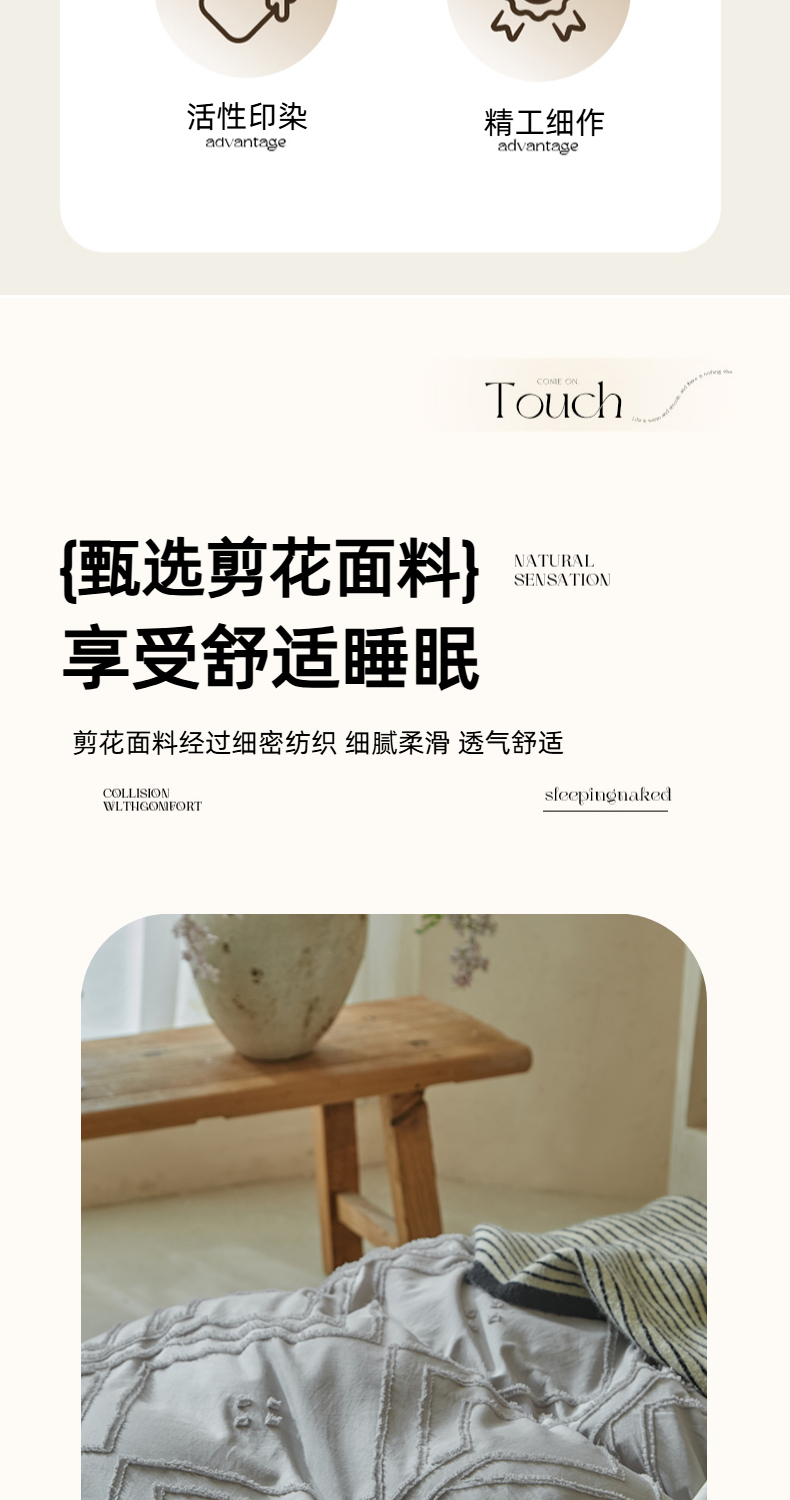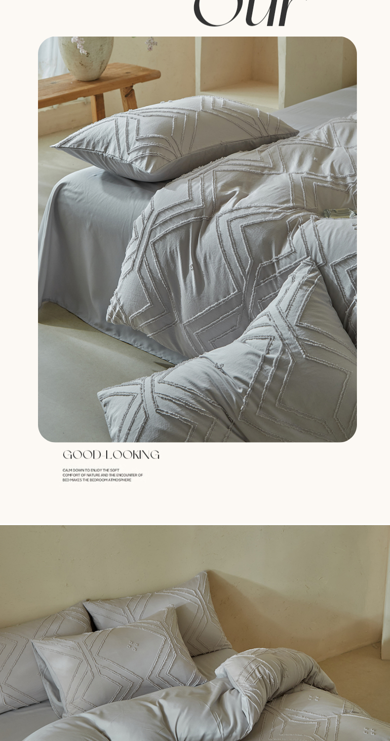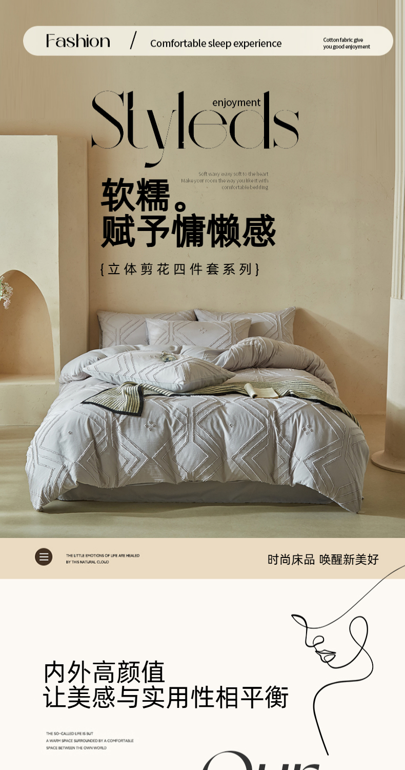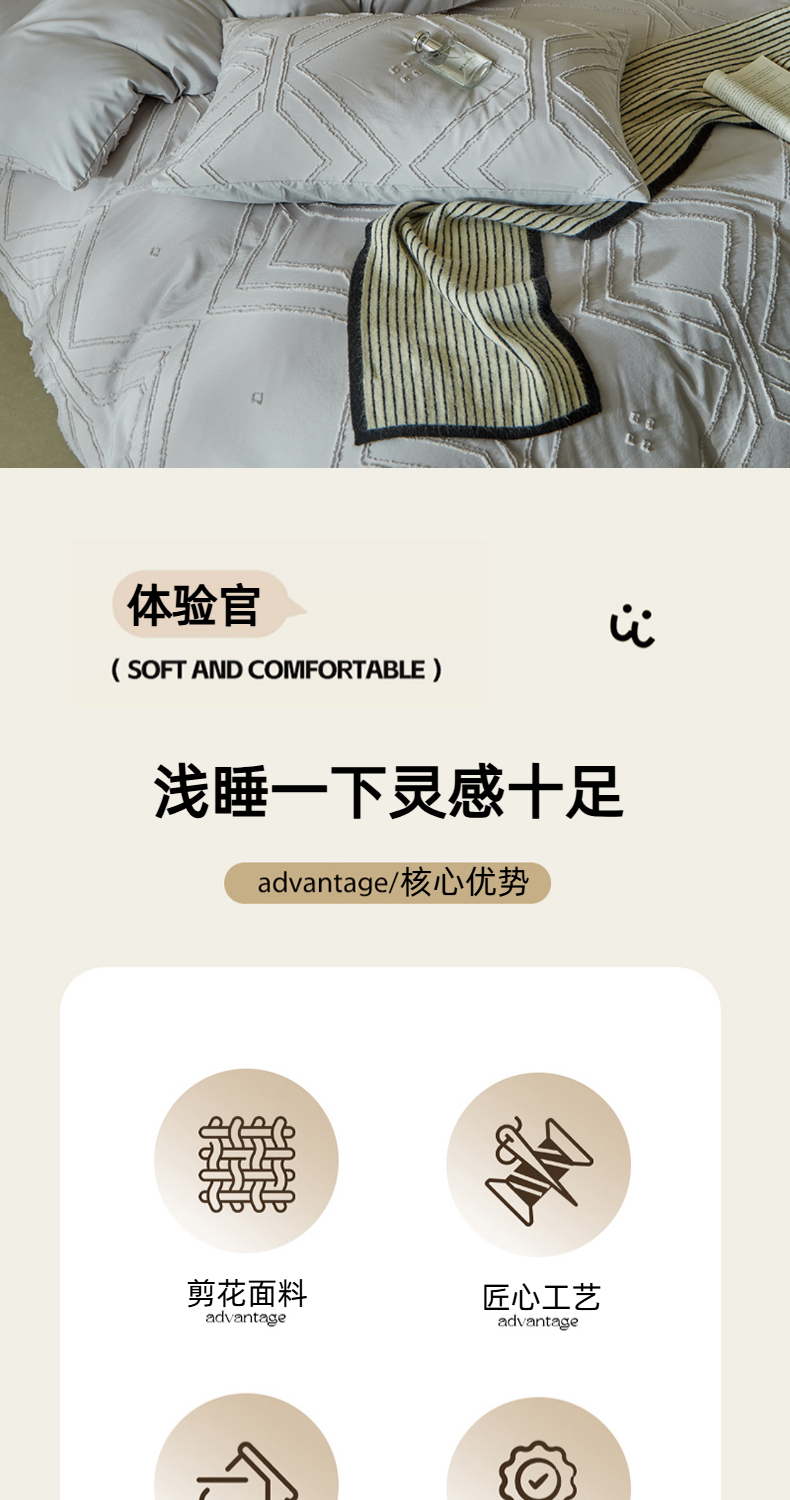 当前位置: 91家纺网 > 商品网购 > 床品套件 > 四件套 > 其它四件套 > 缘生活 2025新款立体剪花A面剪花面料B面加厚磨毛布料四件套 剪花方格-浅灰