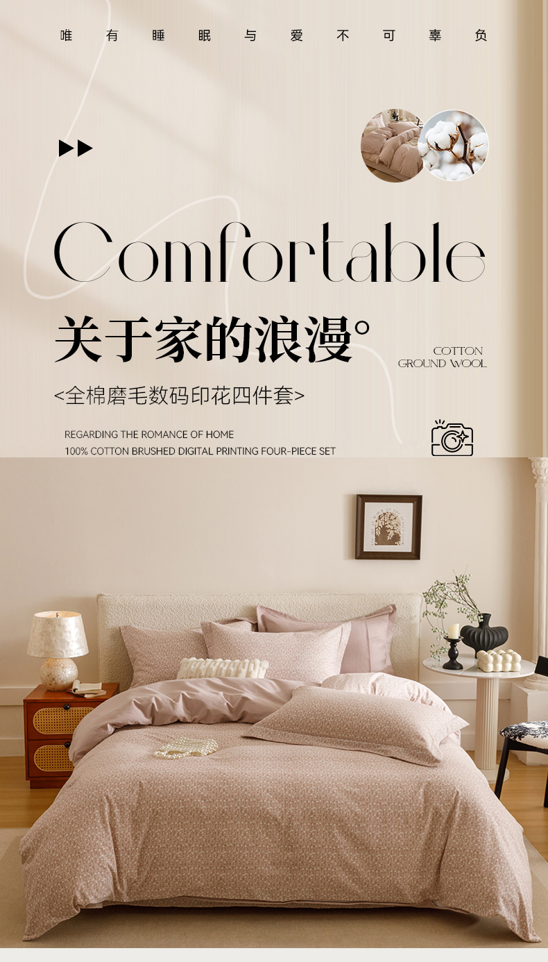 当前位置: 91家纺网 > 商品网购 > 床品套件 > 四件套 > 全棉普通四件套 > 爱思佳 2025新款加厚全棉纯棉磨毛数码印花四件套 情意绵绵