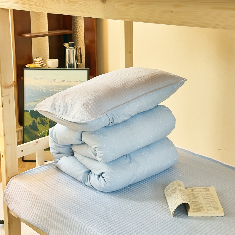 商品名称:梦莱斯2025新款皱皱棉学生款床盖三件套 波点蓝