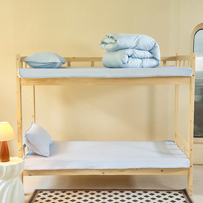 梦莱斯2025新款皱皱棉学生款床盖三件套 波点蓝