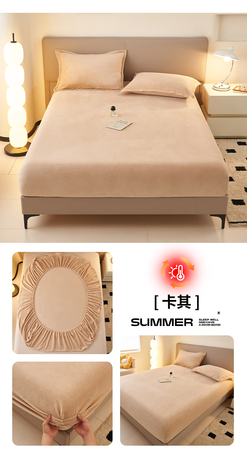 • 91家纺网 家纺一手货源 找家纺 简爱 2025新款纯色牛奶绒单床笠 卡其