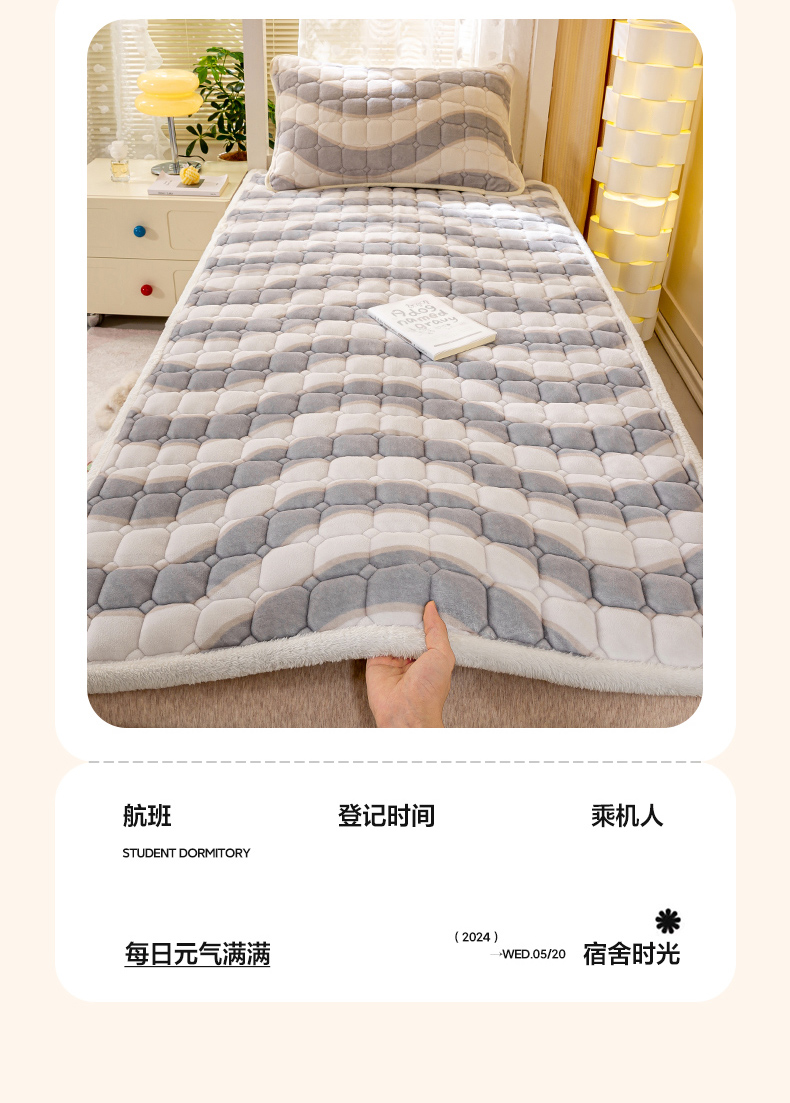 • 91家纺网 家纺一手货源 找家纺 眠势力 2025新款牛奶绒学生床宿舍床垫夹棉加厚床褥子秋冬季保暖床护垫 乘风破浪