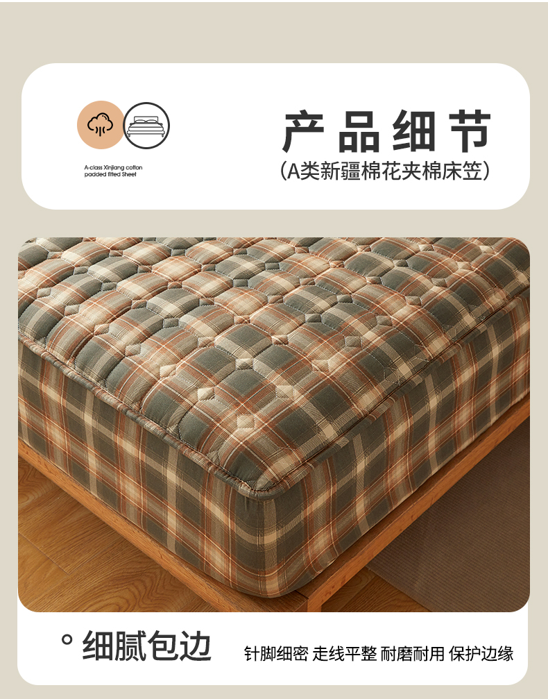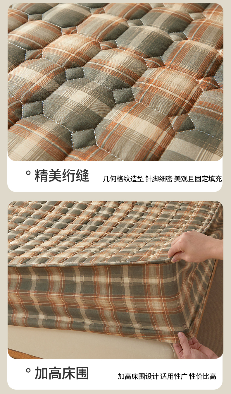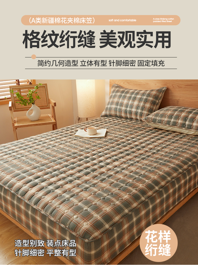 当前位置: 91家纺网 > 商品网购 > 床上用品 > 床笠 > 缦吉 2025款A类水洗棉夹棉新疆棉花格子床笠 简语格 棕