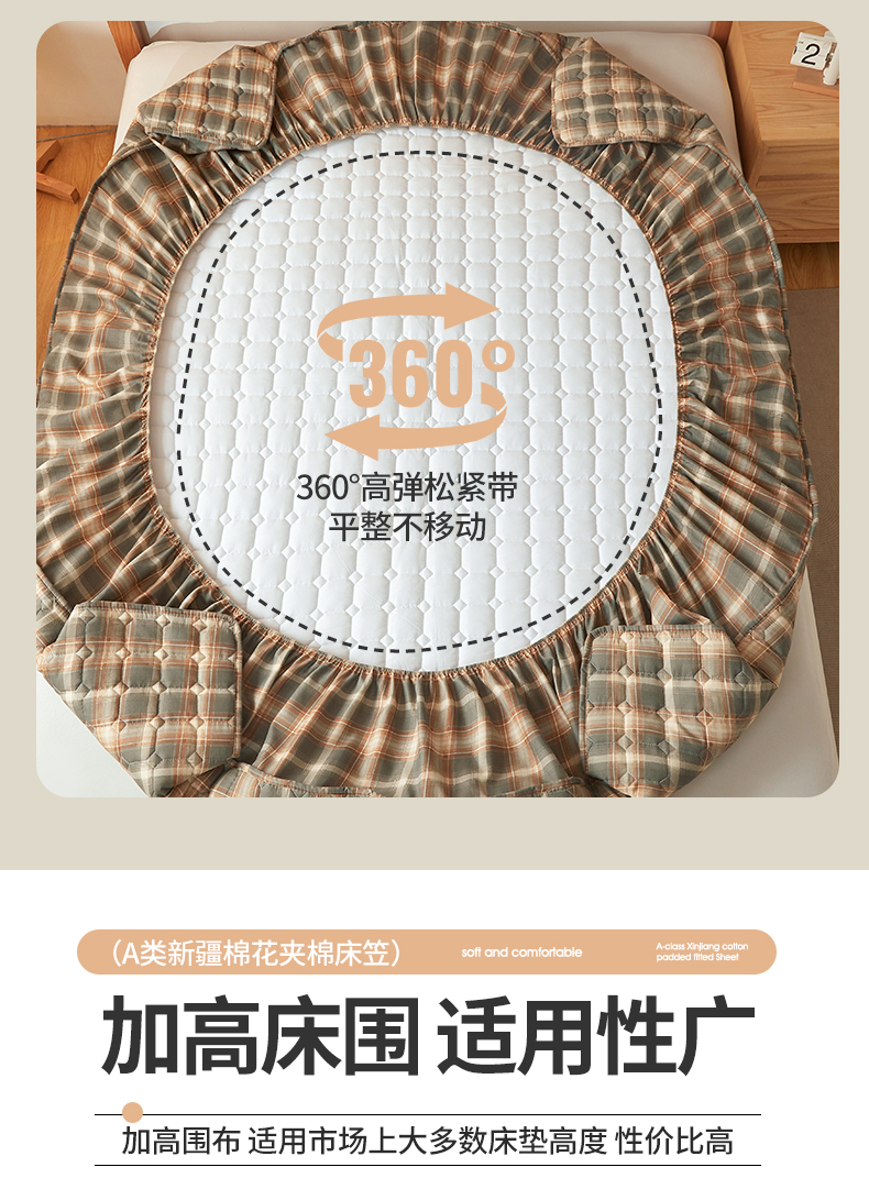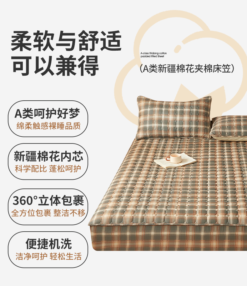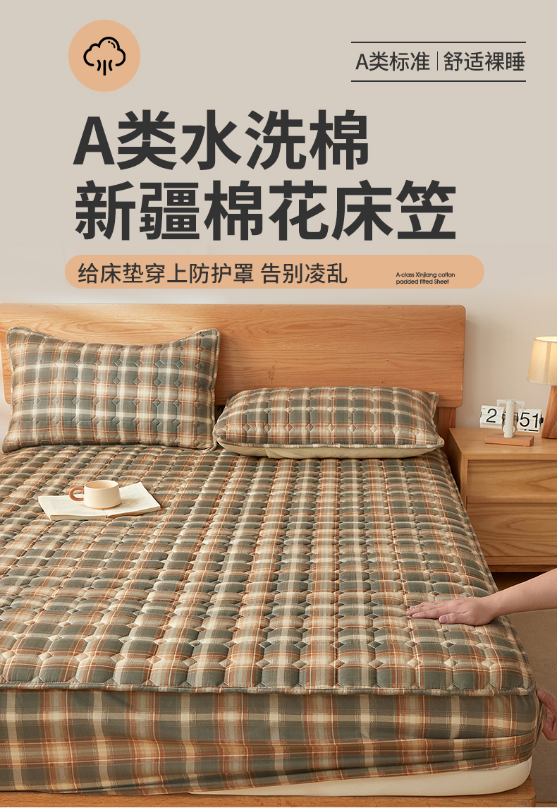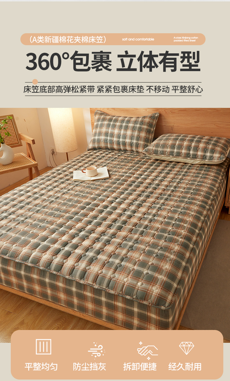 当前位置: 91家纺网 > 商品网购 > 床上用品 > 床笠 > 缦吉 2025款A类水洗棉夹棉新疆棉花格子床笠 简语格 棕