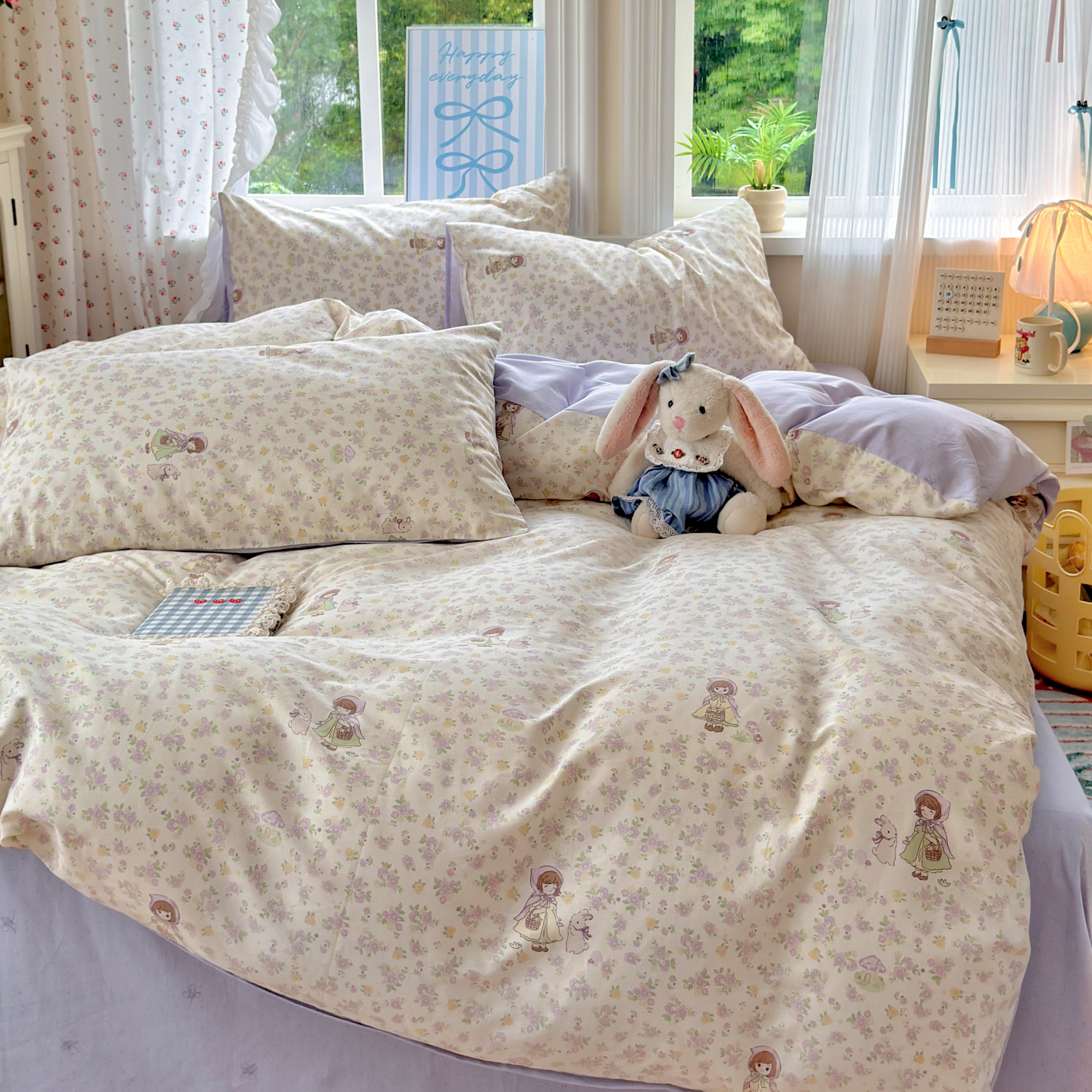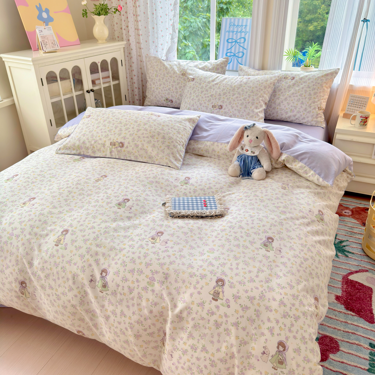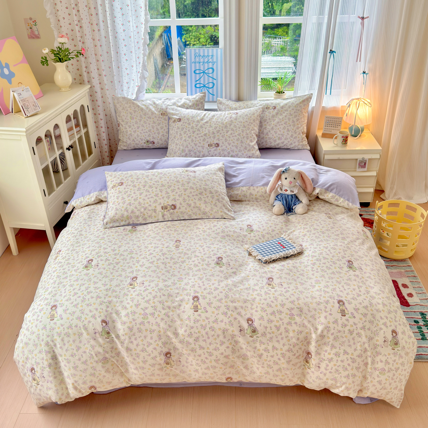 商品名称:优彩 2025新款跑量款13070印花全棉四件套 采花女孩