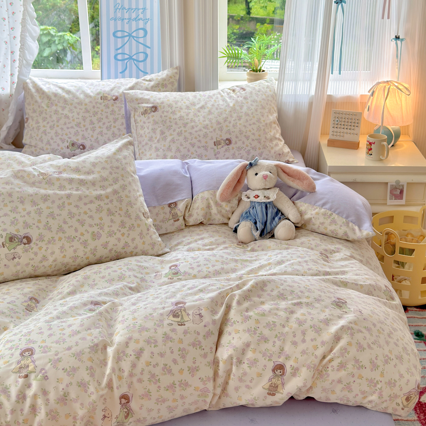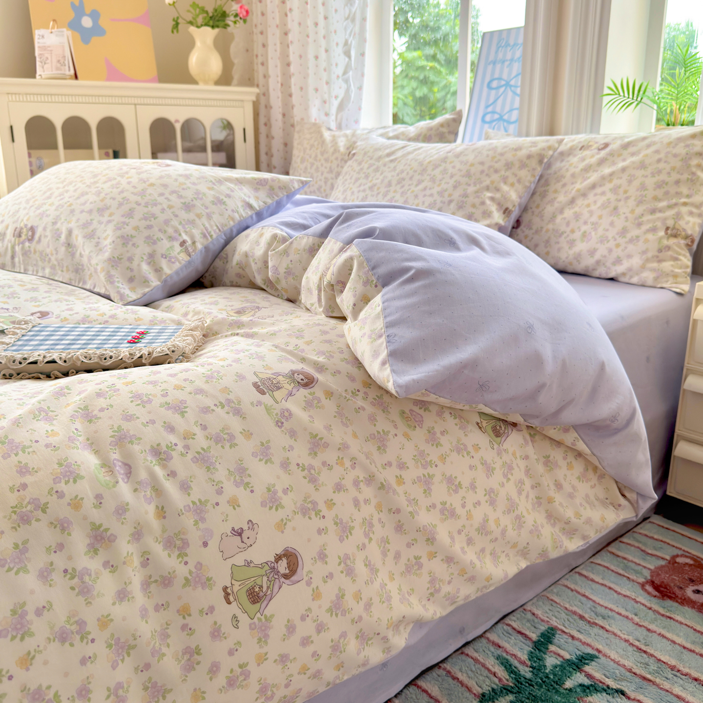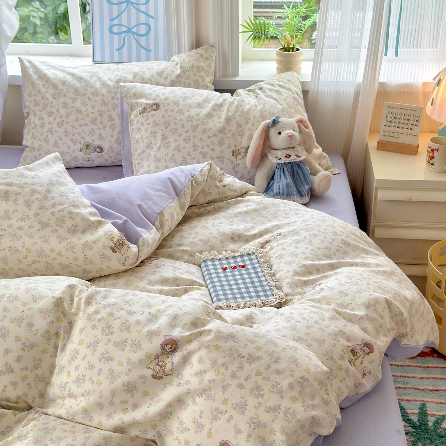 商品名称:优彩 2025新款跑量款13070印花全棉四件套 采花女孩
