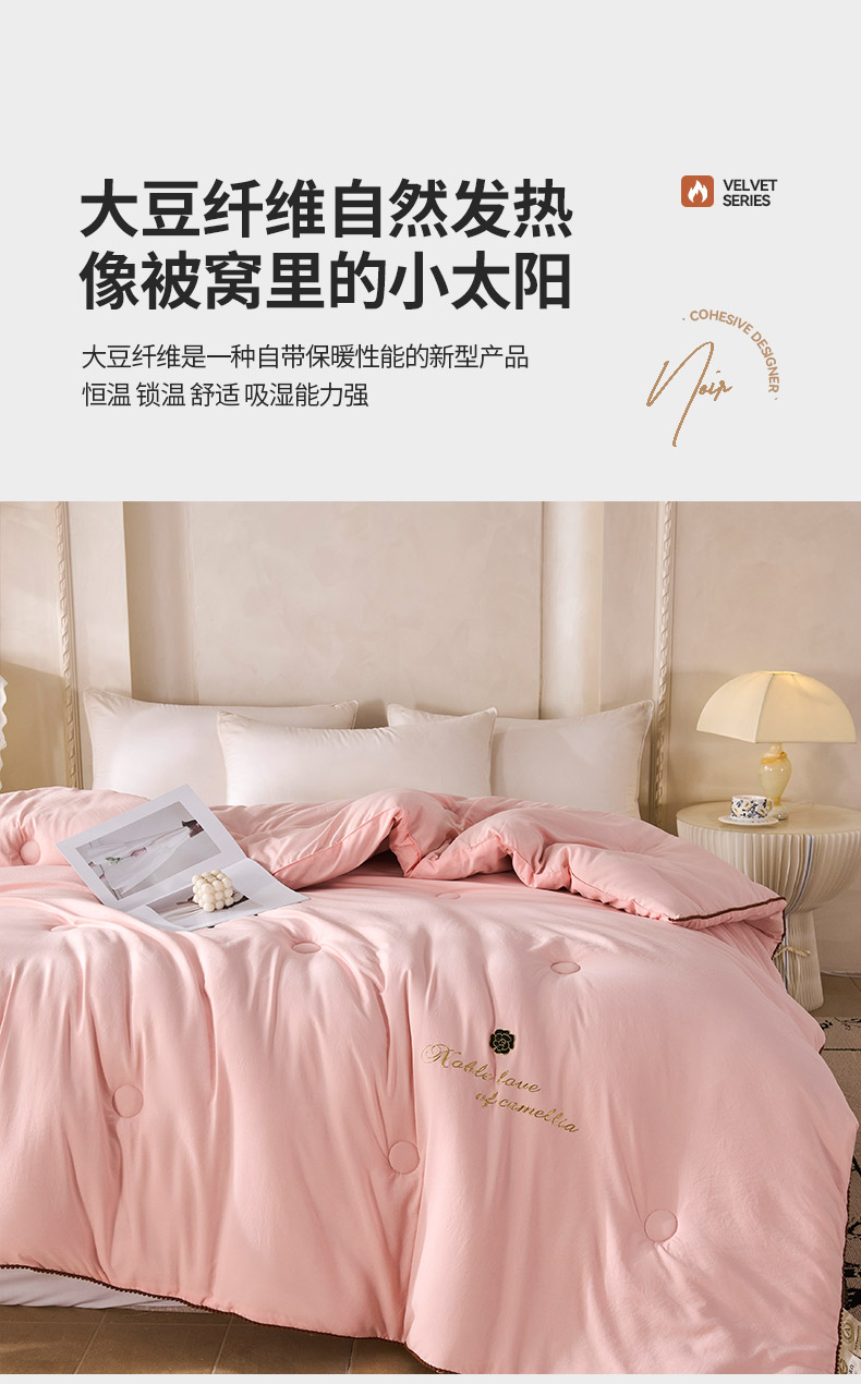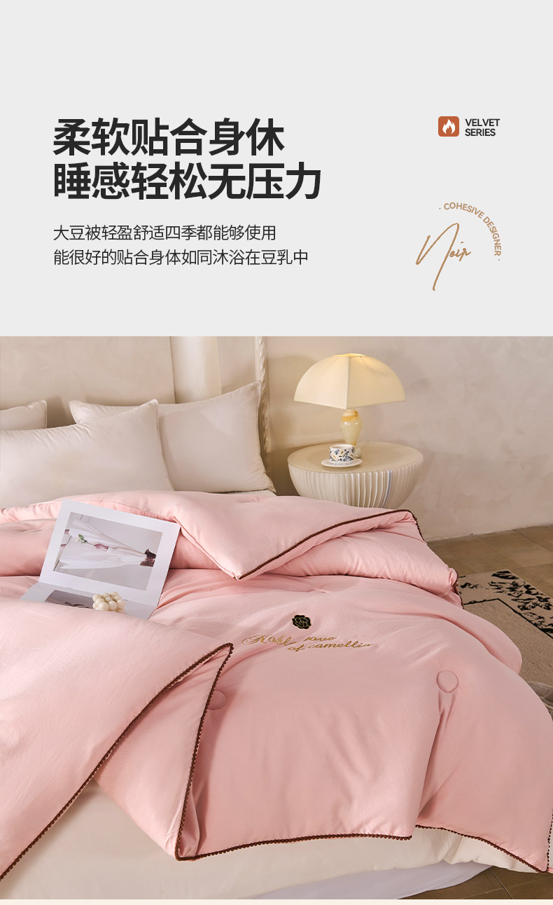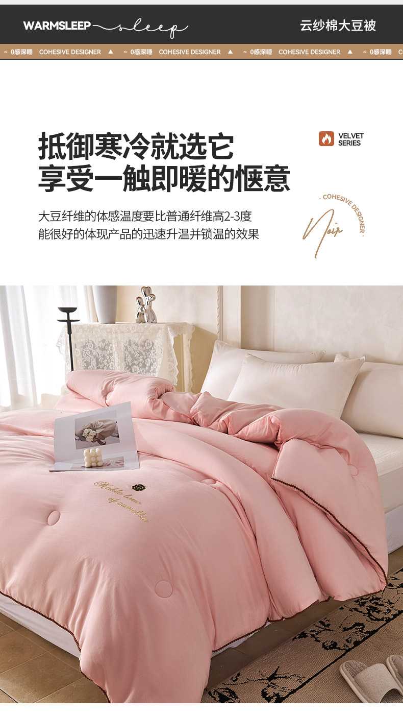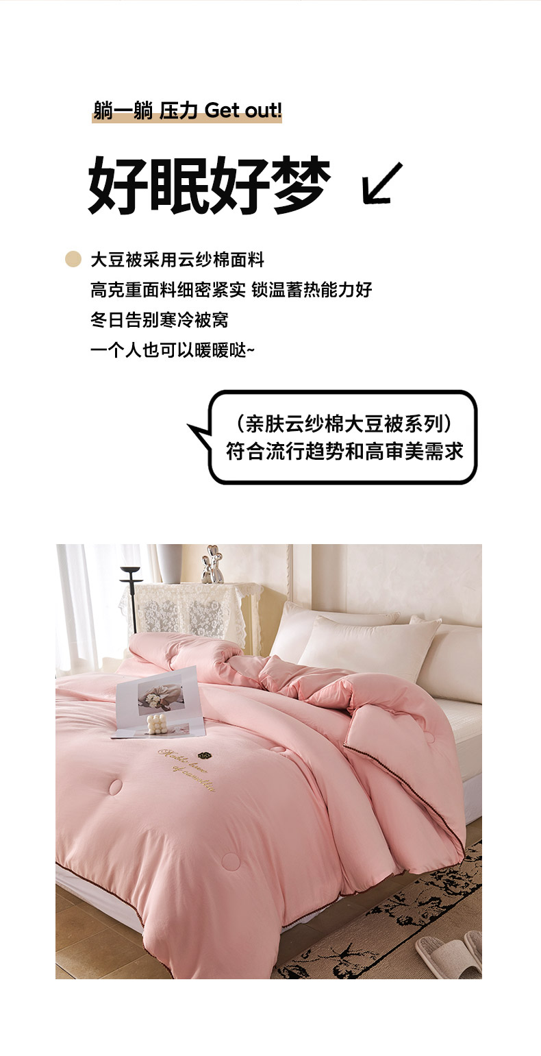• 91家纺网 家纺一手货源 找家纺 爱诗诺家纺 2025年新款3D立体烫画亲肤保暖云纱棉大豆被被子被芯 云纱棉-粉(主图2)