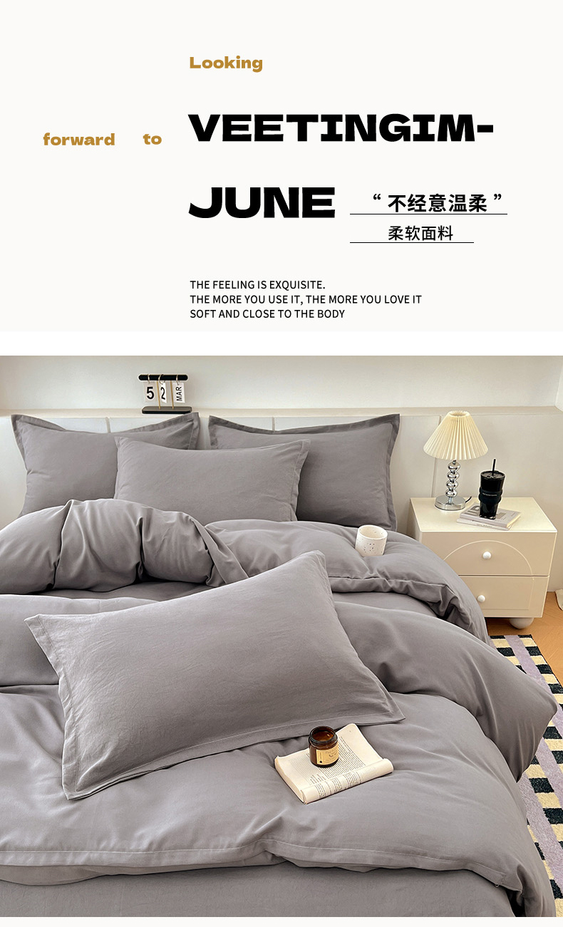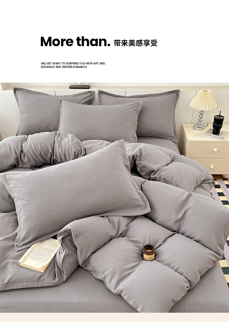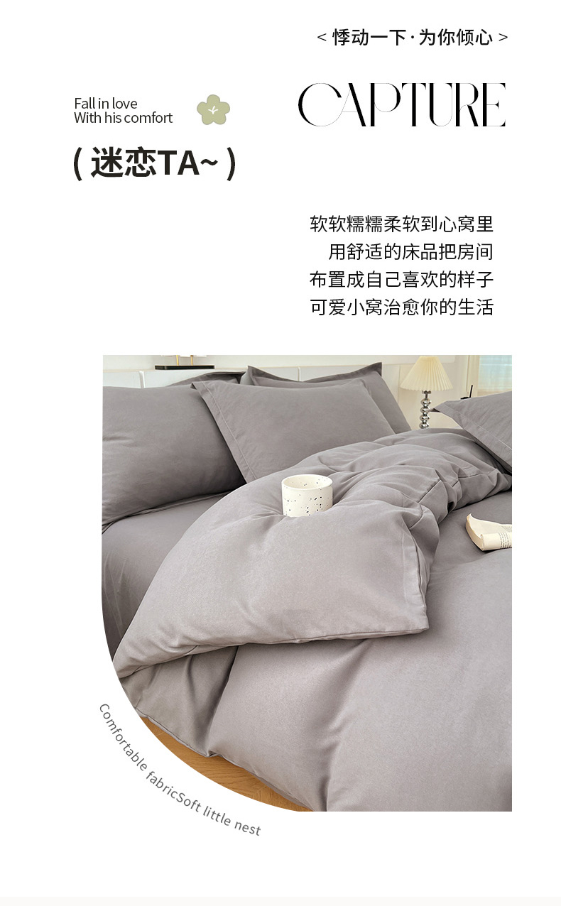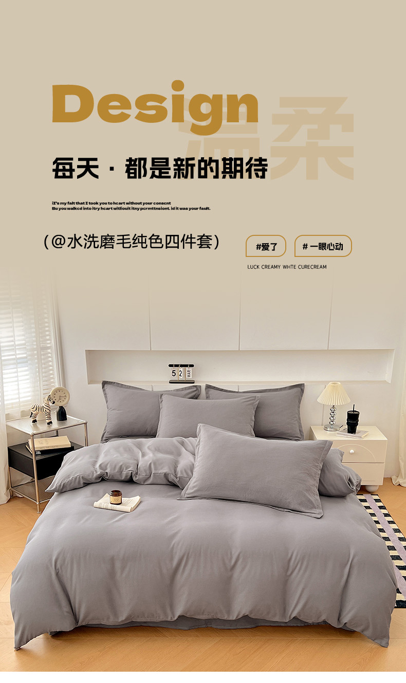 当前位置: 91家纺网 > 商品网购 > 床品套件 > 四件套 > 其它四件套 > 世爵 2025新款热款轻奢简约风高克重纯色140克水洗磨毛四件套 灰色
