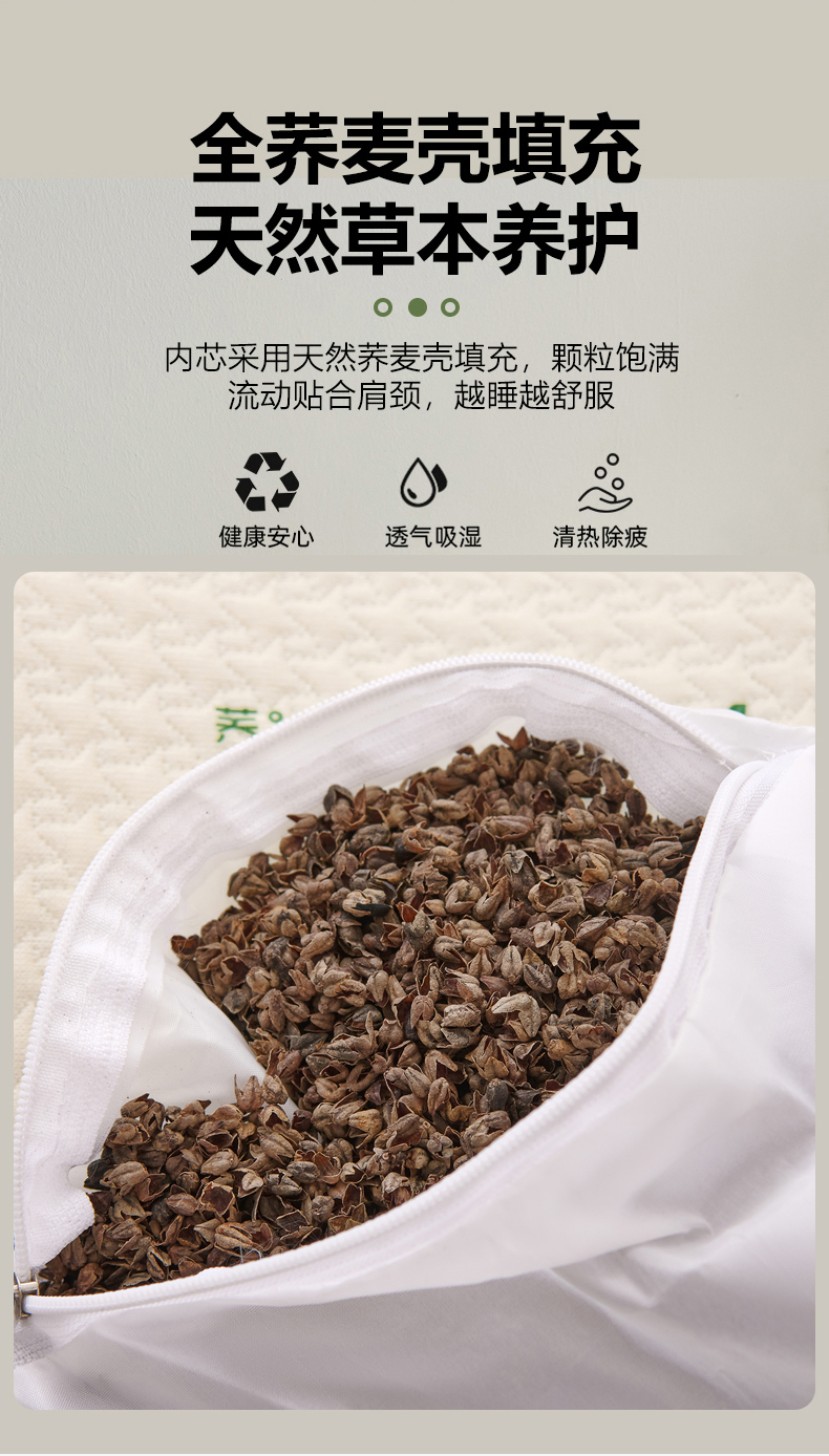 商品名称:大熊枕芯 2025新款草本元宝荞麦护颈枕荞麦壳枕头枕芯 米色