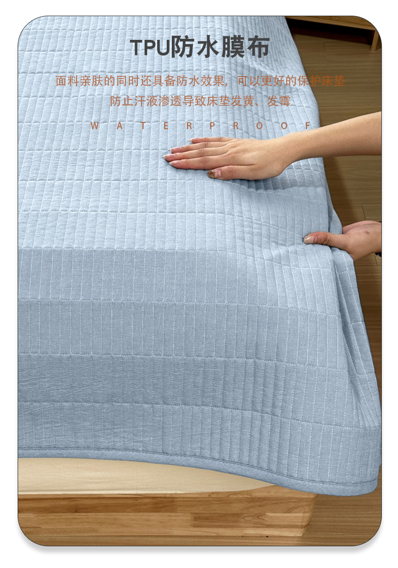 • 91家纺网 家纺一手货源 找家纺 拾小柒 2025新款全棉色织水洗棉夹棉防滑床盖防水纯色床护垫 防滑款浅蓝色