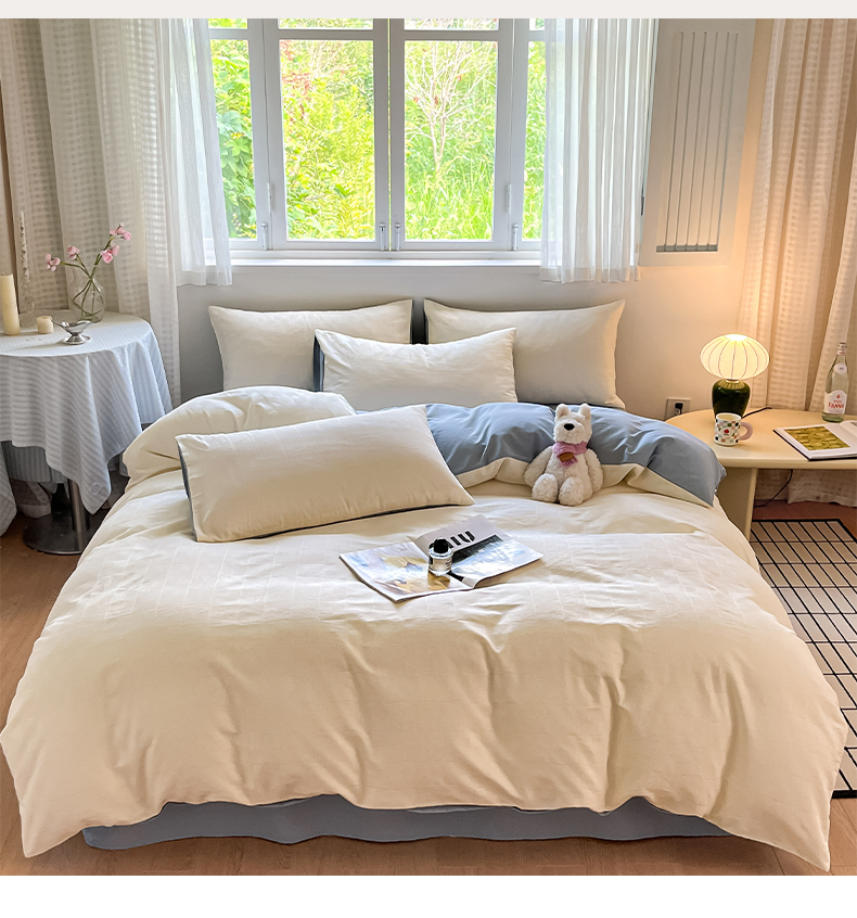 当前位置: 91家纺网 > 商品网购 > 床品套件 > 四件套 > 磨毛活性四件套 > 言一 2025秋冬新品A类60S新疆长绒棉纯棉陶瓷轻磨毛四件套提花全棉床单被套不掉毛2 雅士白+天青蓝
