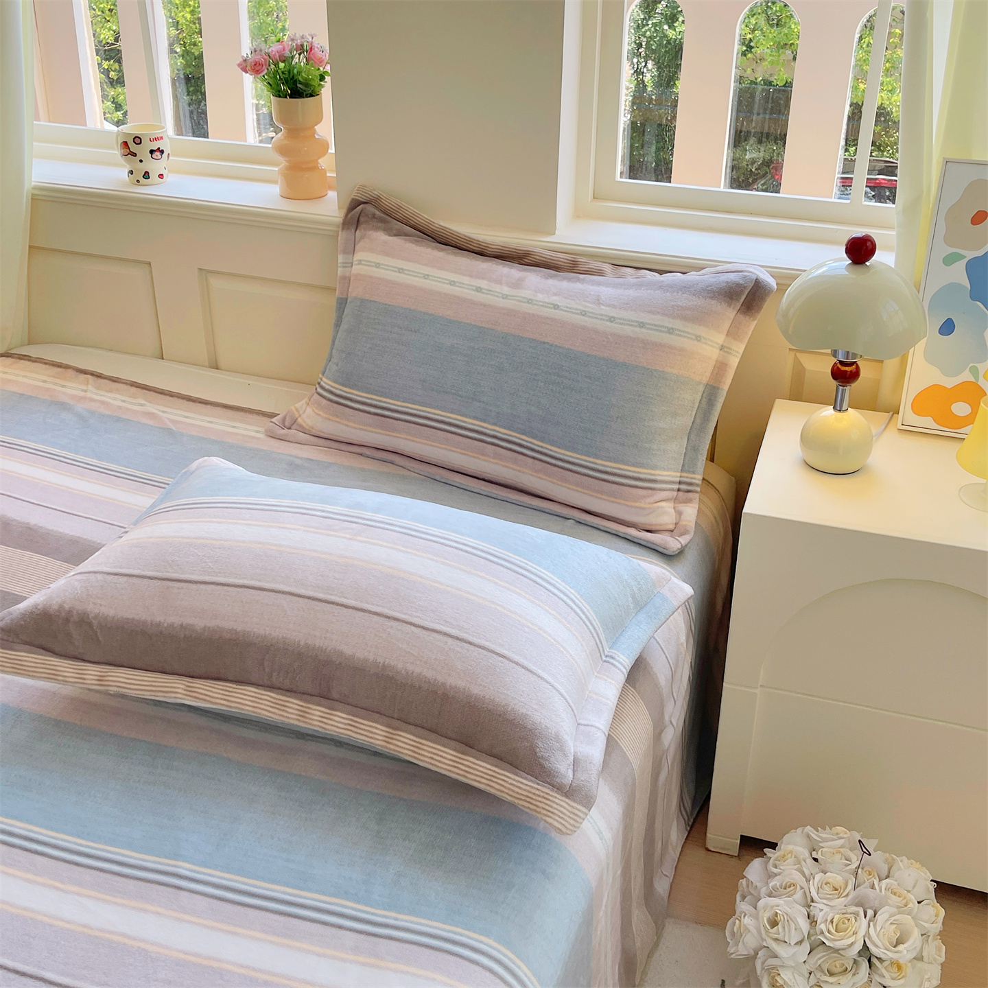 商品名称:凯儿家纺 2025新款A类加厚高克重印花牛奶绒单枕套 英伦之旅-兰