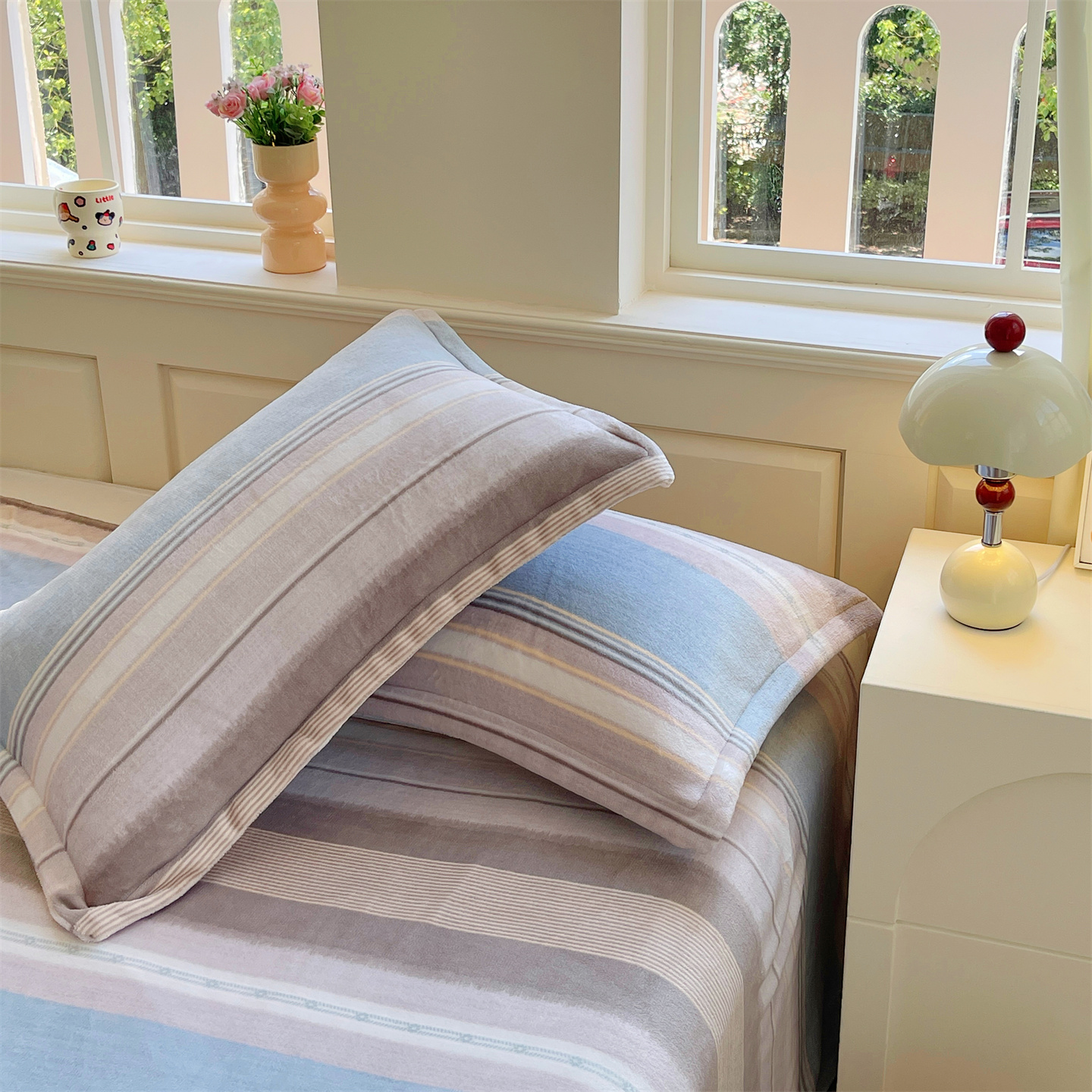 凯儿家纺 2025新款A类加厚高克重印花牛奶绒单枕套 英伦之旅-兰