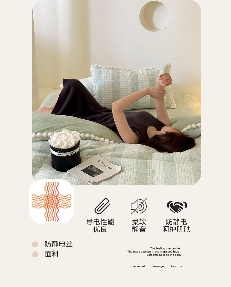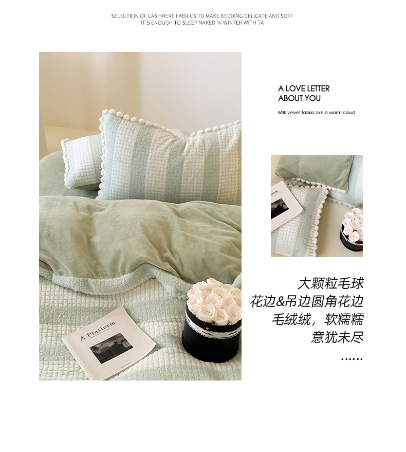 商品名称:玛奇朵 2024秋冬新品泰兔绒提花四件套-朵以系列 朵以-绿