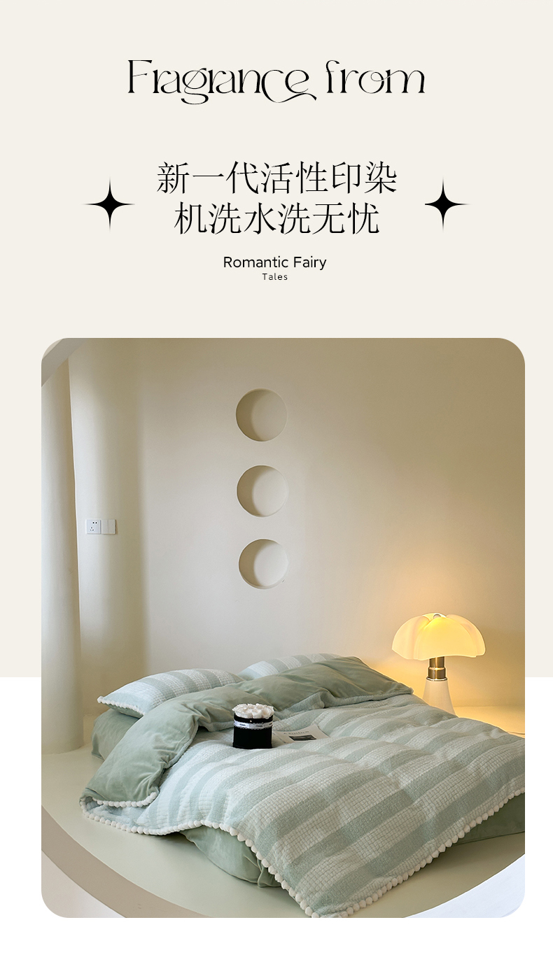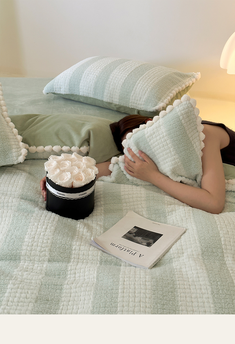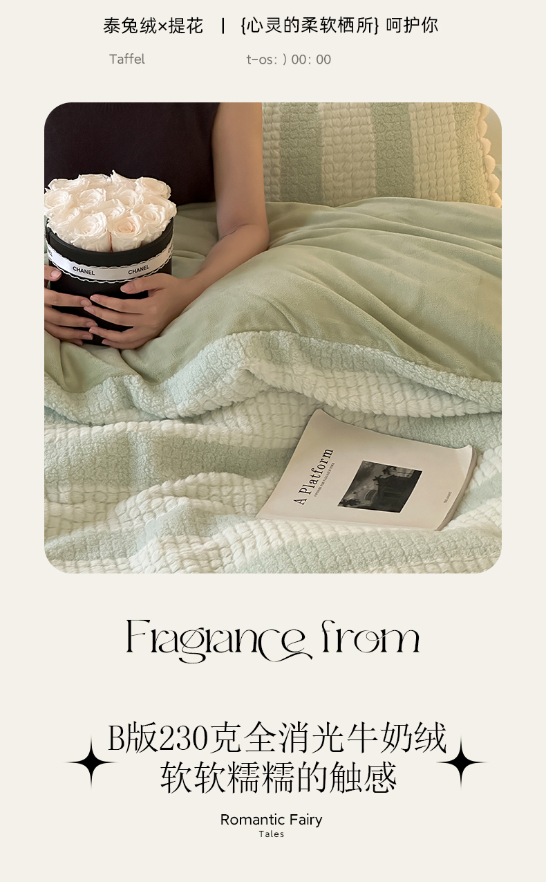 玛奇朵 2024秋冬新品泰兔绒提花四件套-朵以系列 朵以-绿