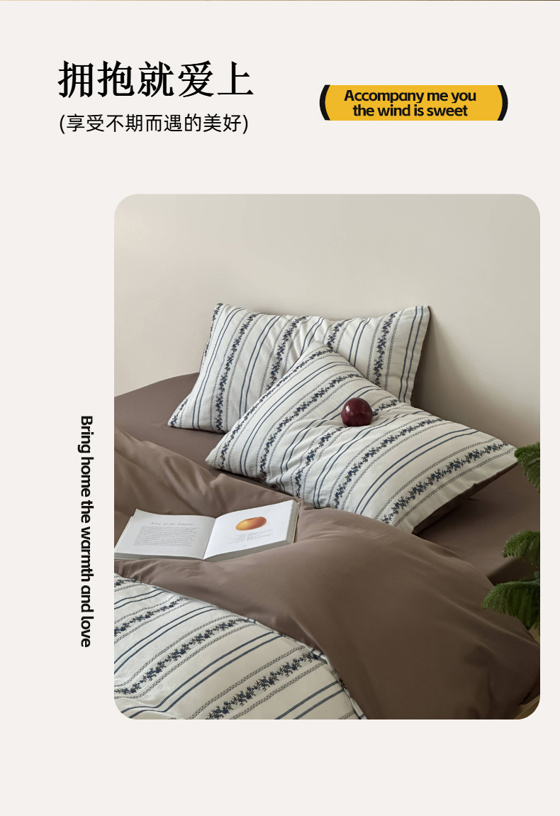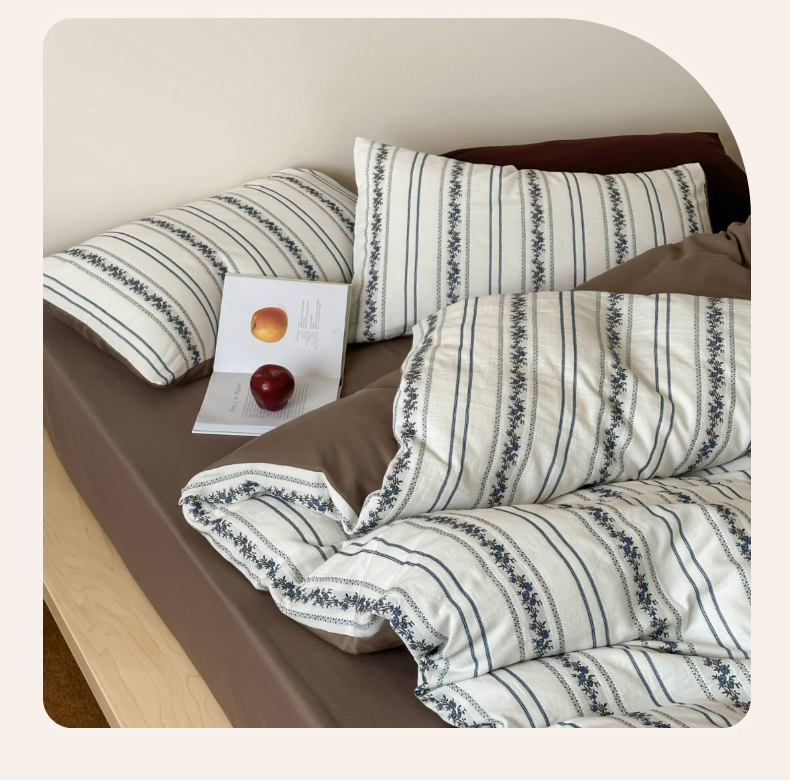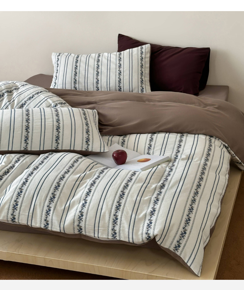 (总)玛奇朵 2025新款棉麻色织条纹系列四件套-南坪晚风,南坪晚风-粉色床单,南坪晚风-咖色床单