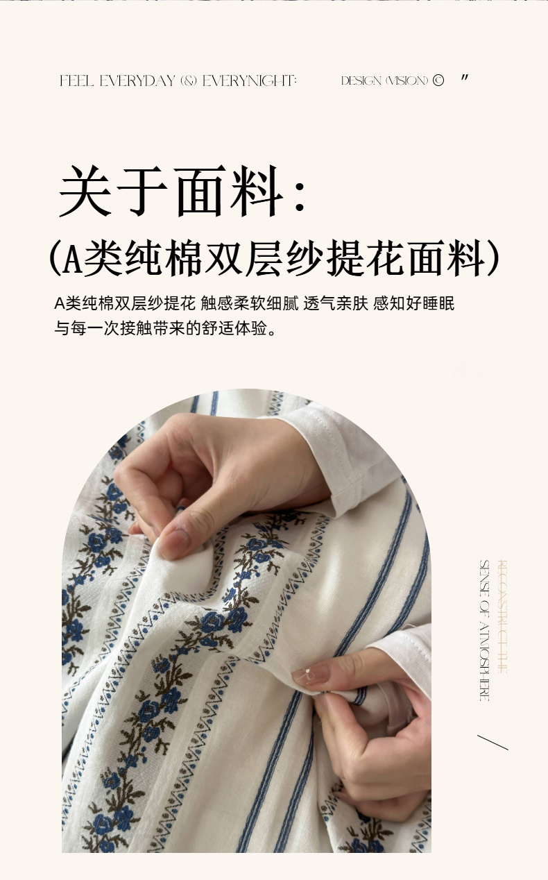 (总)玛奇朵 2024新款法式复古全棉A类双层皱纱-班娜花园,班娜花园-蓝,班娜花园-米
