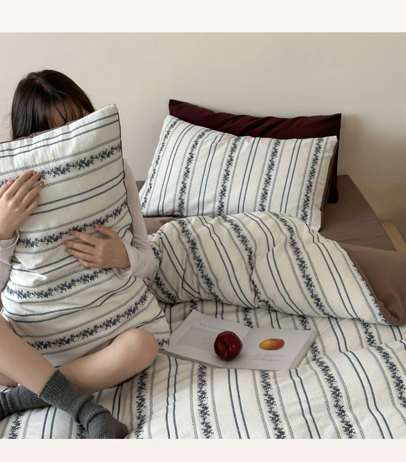 (总)玛奇朵 2025新款棉麻色织条纹系列四件套-雅典海岸,雅典海岸