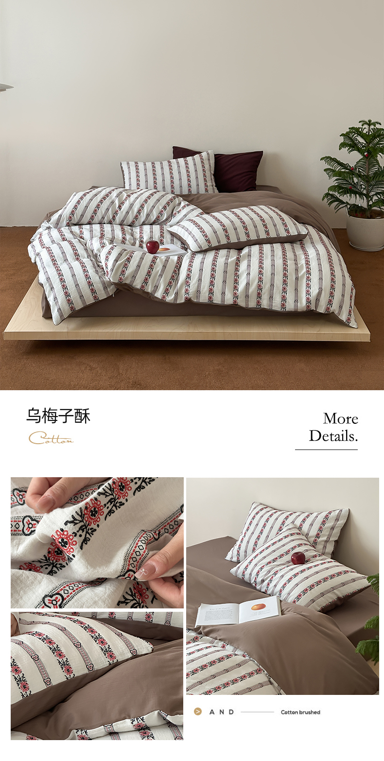 商品名称:玛奇朵 2025新品A类纯棉双层纱提花四件套 棕意盎然